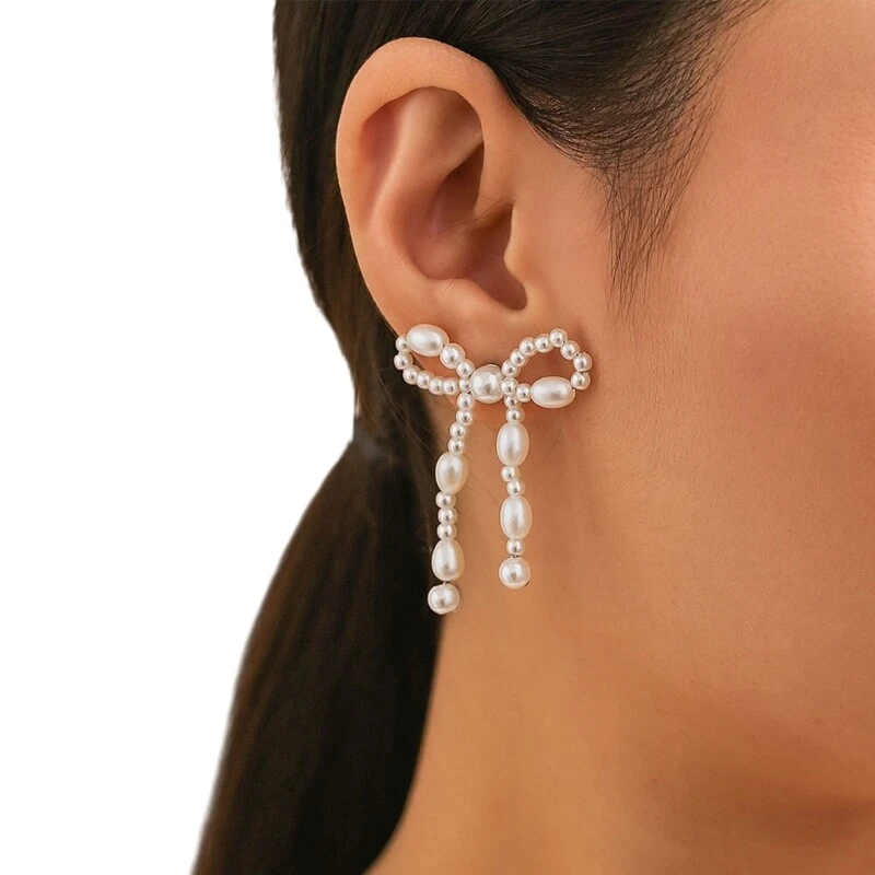 $ 13.2Elegant Sweet Bowknot Dangle Earrings with Long Tassels and Round Beads for Party Wear