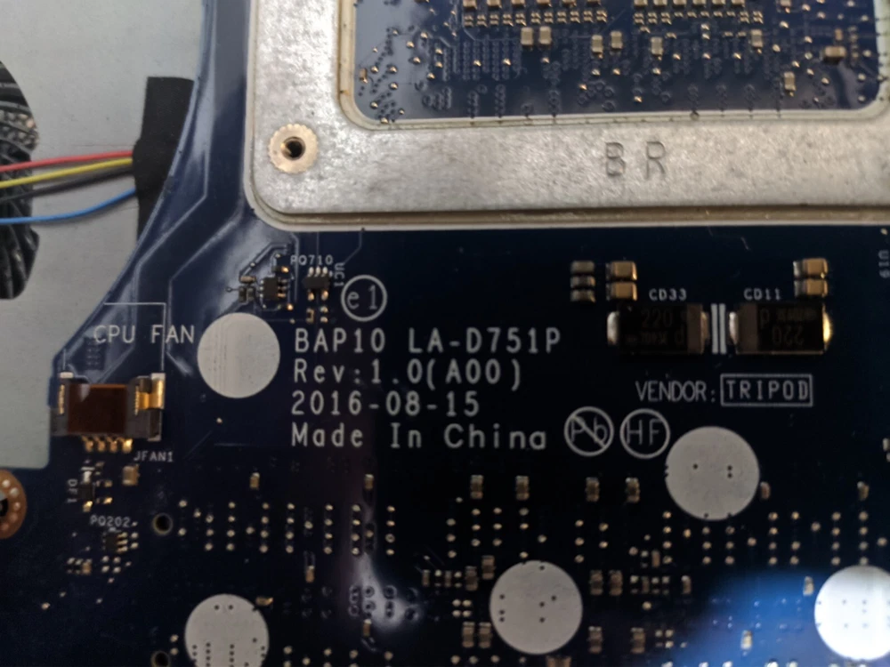 Dell Alienware 15 R3, motherboard: BAP10 LA-D751P i7 7700HQ, GTX 1070, 8gb ram. Dont know the condition, when all present cables are connected power button lights blue(maybe only when plugged in, I dont remember, was a while since I had it). Some minor parts are missing, some bolts, maybe cables and such. Basically has whatever you can see on photos.