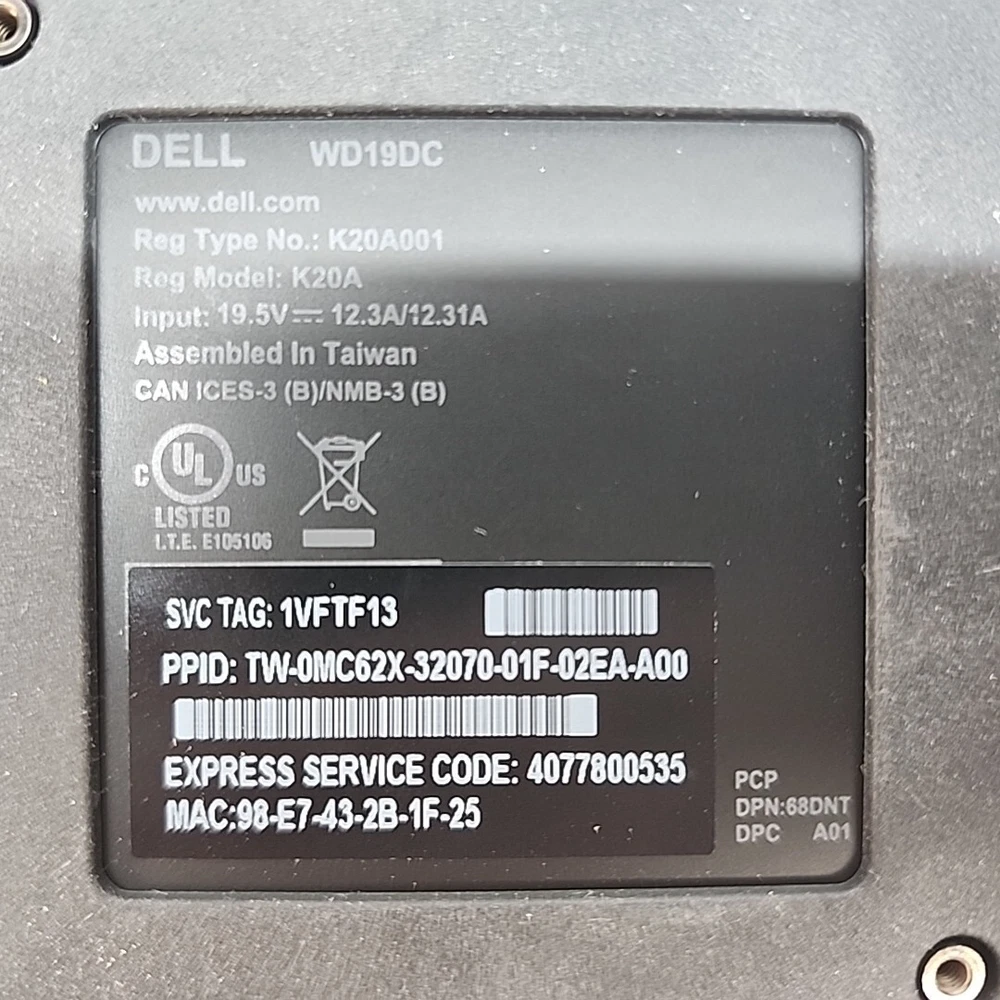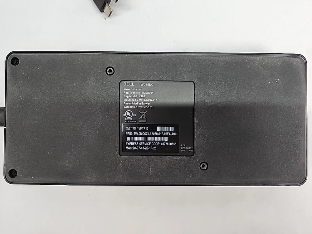 Dell Dual USB-C Docking Station WD19DC - K20A001 - WD19 / K20 - TESTED Item is tested and in good working condition. Please refer to pictures for all questions regarding the condition of the item. If you do not see something in the pictures, it is most likely not included unless otherwise stated. Item is sold as is. Terms of Sale If there are any problems or comments, we look forward to hearing from you and will respond to any inquiries within 48 hours. We want you to be completely satisfied with your purchase and wand to make things right! We accept returns within 30 days of delivery, however the buyer will be responsible for a 20% restocking fee. Buyer is responsible for return shipping costs! Please contact us before returning! Items are only shipped after payment is received! Be sure to double check your address when placing the order! Shipping Information We accept PayPal as it is the safest and easiest for buyers. Please pay withn 48 hours of purchase. If item is not paid for after 5 days, it will be relisted. Delivery date will be according to the USPS or Fedex tracking system. We appreciate your interest! Thanks for looking and we hope you have a good day!
