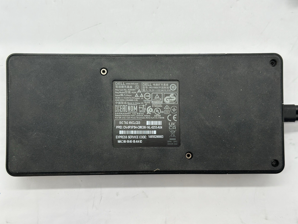 This unit is sold exactly as shown in the pictures. It was used and has some marks, scuffs or scratches. Please carefully consider the cosmetic condition before placing your order. This unit comes with a power supply. This unit has been power tested only and turns on. The Dell WD19DC Dual USB-C Performance Dock Docking Station is a high-performance accessory designed for laptops. With passive cooling, this docking station ensures optimal temperature management for your device while providing additional ports for connectivity. Compatible with a range of laptop sizes and models, including Dell Latitude devices, this sleek black station is a versatile and reliable tool for enhancing your workspace. Whether you need to expand your device's capabilities or simply connect to more peripherals, this docking station delivers the functionality you require.