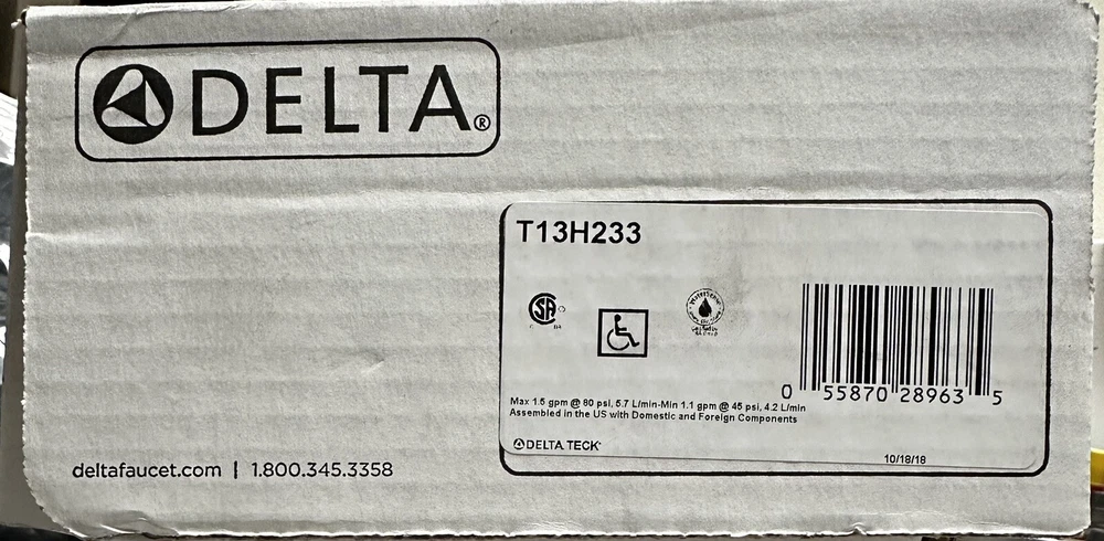 ~ Delta Universal Tub And Shower Trim ~T13H233 ~ Tub & shower valve with pull-up diverter tub spout ~ Please see manufacturers website for detailed information ~ In original packaging and original box