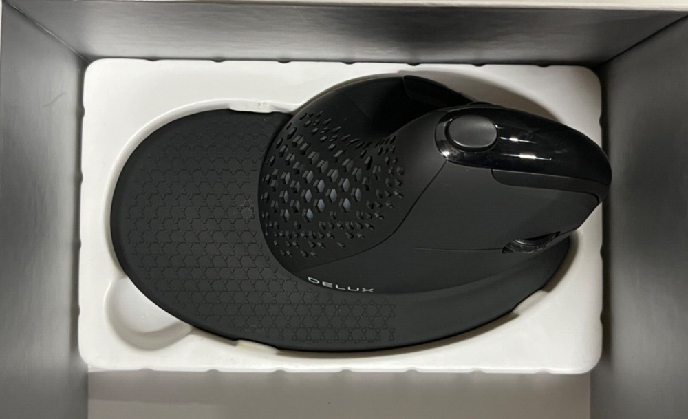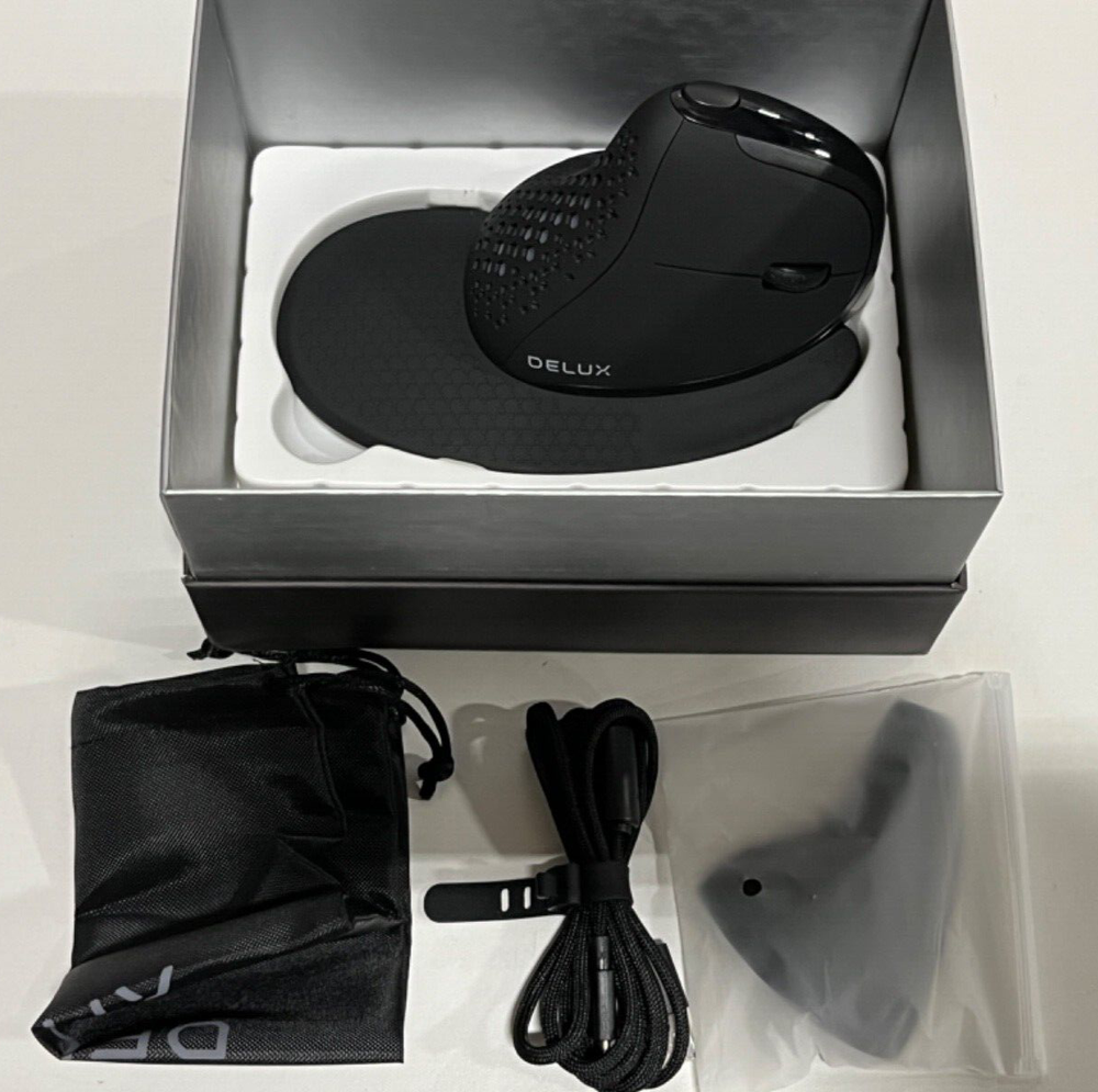 Delux Seeker M618XSD Vertical Ergonomic Mouse Rechargeable USB Bluetooth OLED Display for Comfort Precision Gaming Office Use