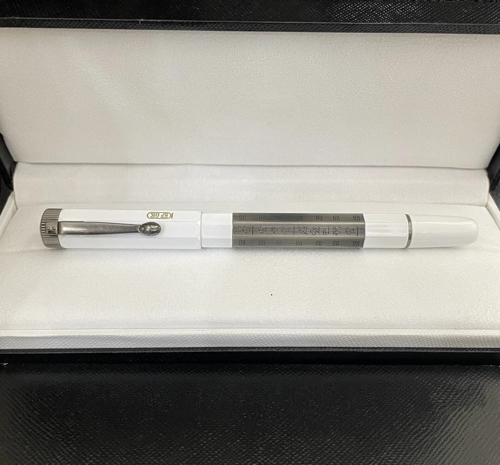 All pens have white star logo , i hide it because of some policy , if have any questions about the pen , just contact me to ask , thx Deluxe MB Egypt Two-Tones Series White - Silver Color 0.7mm Rollerball Pen No Box Pen description : Materail: metal Color: see pictures Writing Point: 0.7mm black nib Pen Length: 142mm Pen Weight : about 52g Package included : 1 single pen with 2 pen refills (one more refill for free) Thank you for your visit and happy shopping!!!(Accept wholesale) Also, please check out my other listings!!!enjoy your shopping Payment : We accept all payments! Shipping : We ship to worldwide for free by SpeedPak ,u sually delivery time 15-25 days. If you have not received item within 30 days,please feel free to contact us! Thanks! Return : We offer full refund 100% from the price you buy. You can return item within 30 day after items received. Feedback Policy : We will reciprocate Positive Feedback for Successful transaction. If you are happy with our service, please be so kind to leave us Positive Feedback with 5 Star ratings. Contact us : If you have any questions ,please feel free to contact us by ebay message, we will try our best to give you the best solution by communication.