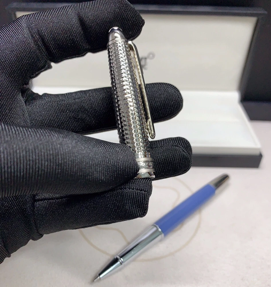 All pens have white star logo , i hide it because of some policy , if have any questions about the pen , just contact me to ask , thx Deluxe Metal MB163 Series Glacier Blue - 3D Steel Color 0.7mm Rollerball Pen No Box Pen description : Materail: metal Color: see pictures Writing Point: 0.7mm black nib Pen Length: 136mm Pen Weight : about 36g Package included : 1 single pen with 2 pen refills (one more refill for free) Thank you for your visit and happy shopping!!!(Accept wholesale) Also, please check out my other listings!!!enjoy your shopping Payment : We accept all payments! Shipping : We ship to worldwide for free by SpeedPak ,u sually delivery time 15-25 days. If you have not received item within 30 days,please feel free to contact us! Thanks! Return : We offer full refund 100% from the price you buy. You can return item within 30 day after items received. Feedback Policy : We will reciprocate Positive Feedback for Successful transaction. If you are happy with our service, please be so kind to leave us Positive Feedback with 5 Star ratings. Contact us : If you have any questions ,please feel free to contact us by ebay message, we will try our best to give you the best solution by communication.