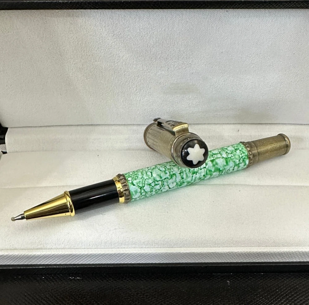 All pens have white star logo , i hide it because of some policy , if have any questions about the pen , just contact me to ask , thx Deluxe MB Patron of Arts Burgess Series Green + Copper Gold Color Rollerball Pen Pen detail : Material : metal Pen Color : like photo showed Weight : about 50g Length : about 141mm(closed) Refill : 0.7mm black (2 refills,one more free) Package included : one single re-plica pen with no box Free Shipping We ship to worldwide for free,ship by SpeedPAK , usually delivery time will be 14-25 workdays. If you don't received your package within 35 days,please feel free to contact us! Thanks! Contact us If have any questions about the pen ,hope you can contact us first , don't go to open case directly ,case is bad to a seller ,thx . Return You can return item within 14 day after items received , before returning , contact us first About Feedback If you are happy with our service, you can leave us a "Positive Feedback" with all five stars ratings ,thank you