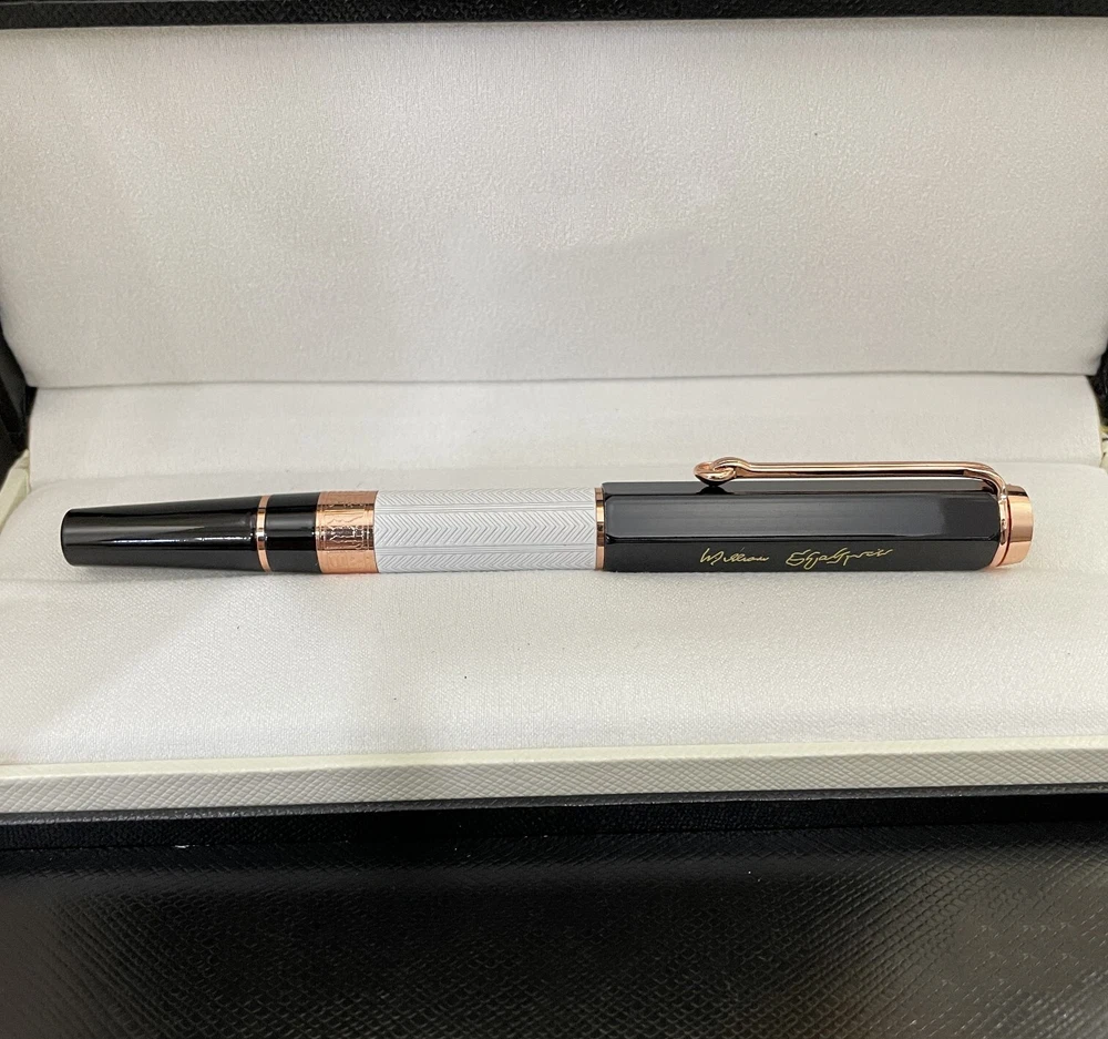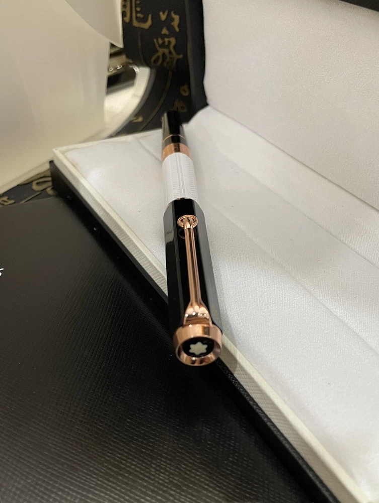 All pens have white star logo , i hide it because of some policy , if have any questions about the pen , just contact me to ask , thx Deluxe MB Great Writer Shakespeare Series White - Rose Gold Clip 0.7mm Rollerball Pen No Box Pen detail : Material : metal Pen Color : like photo showed Weight : about 48g Length : about 136mm(closed) Refill : 0.7mm black (2 refills,one more free) Package included : one single re-plica pen with no box Free Shipping We ship to worldwide for free,ship by SpeedPAK , usually delivery time will be 14-25 workdays. If you don't received your package within 35 days,please feel free to contact us! Thanks! Contact us If have any questions about the pen ,hope you can contact us first , don't go to open case directly ,case is bad to a seller ,thx . Return You can return item within 14 day after items received , before returning , contact us first About Feedback If you are happy with our service, you can leave us a "Positive Feedback" with all five stars ratings ,thank you