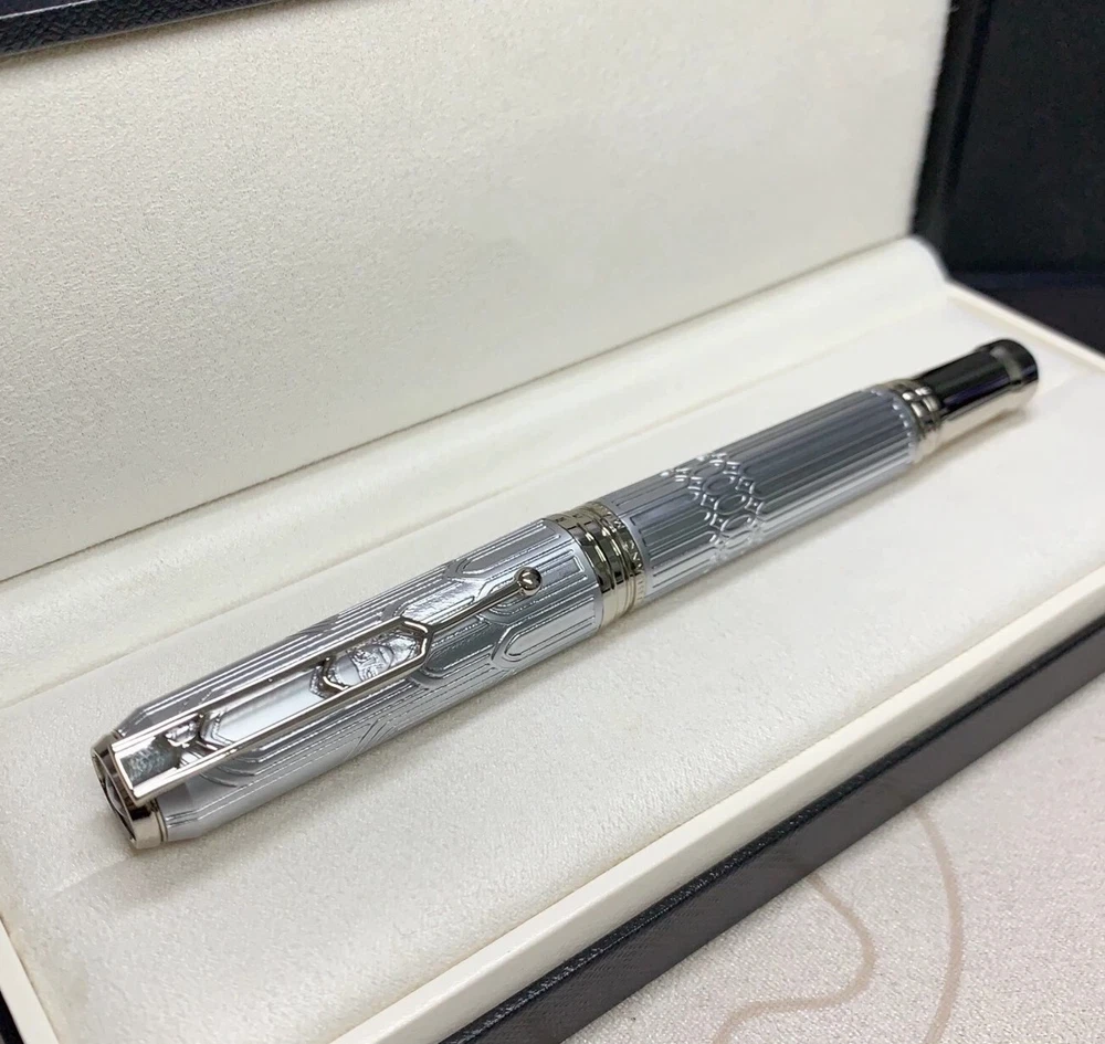 All pens have white star logo , i hide it because of some policy , if have any questions about the pen , just contact me to ask , thx Deluxe MB Great Writer Hugo Series White - Silver Clip 0.7mm Rollerball Pen No Box Pen detail : Material : metal Pen Color : like photo showed Weight : about 76g Length : about 146mm(closed) Refill : 0.7mm black (2 refills,one more free) Package included : one single re-plica pen with no box Free Shipping We ship to worldwide for free,ship by SpeedPAK , usually delivery time will be 14-25 workdays. If you don't received your package within 35 days,please feel free to contact us! Thanks! Contact us If have any questions about the pen ,hope you can contact us first , don't go to open case directly ,case is bad to a seller ,thx . Return You can return item within 14 day after items received , before returning , contact us first About Feedback If you are happy with our service, you can leave us a "Positive Feedback" with all five stars ratings ,thank you