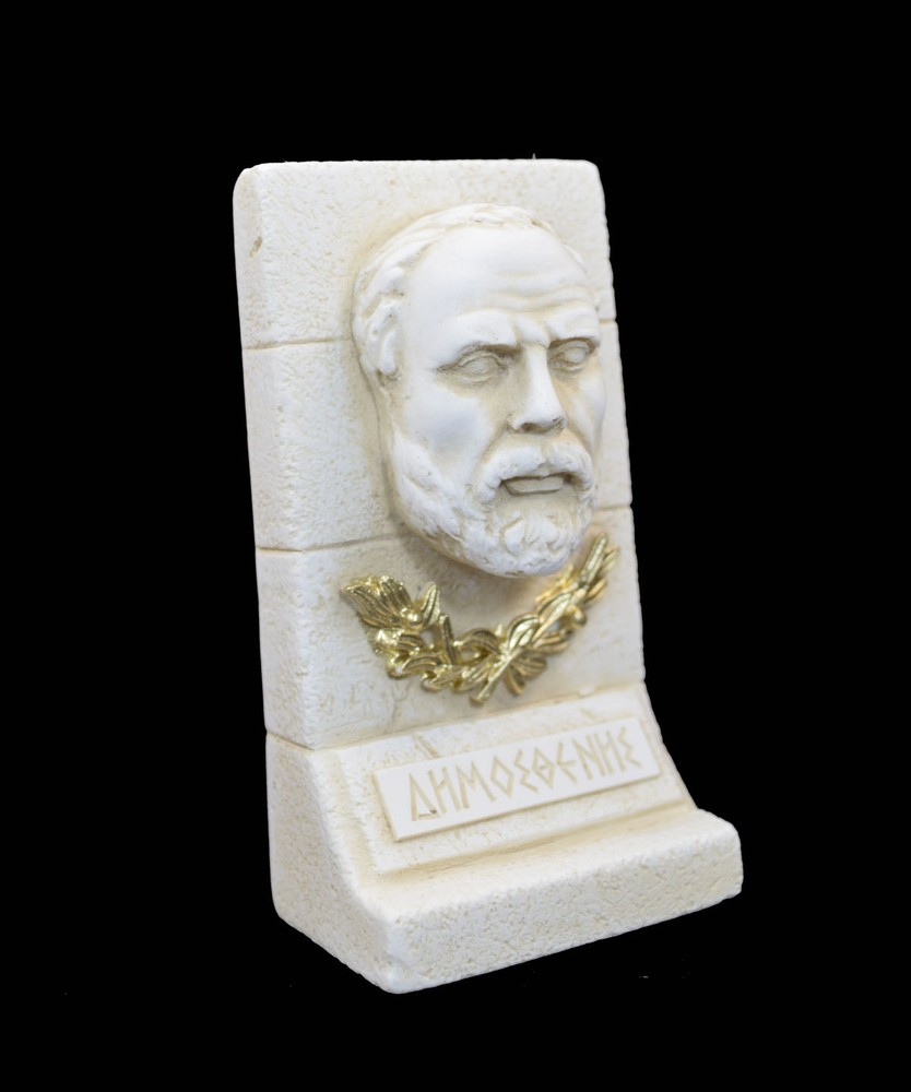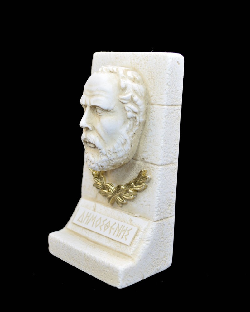 Demosthenes ( Greek: Δημοσθένης Dēmosthénēs 384–322 BC) was a prominent Greek statesman and orator of ancient Athens. His orations constitute a significant expression of contemporary Athenian intellectual prowess and provide an insight into the politics and culture of ancient Greece during the 4th century BC. Demosthenes learned rhetoric by studying the speeches of previous great orators. He delivered his first judicial speeches at the age of 20, in which he argued effectively to gain from his guardians what was left of his inheritance. For a time, Demosthenes made his living as a professional speech-writer (logographer) and a lawyer, writing speeches for use in private legal suits. (03 00 025) Tracking number provided!!! Details: Condition: New, made in Greece. Approximately Height: 10cm - 3.9 inches Width : 6cm - 2.3 inches Weight: 220g Material: Alabaster patina aged ********