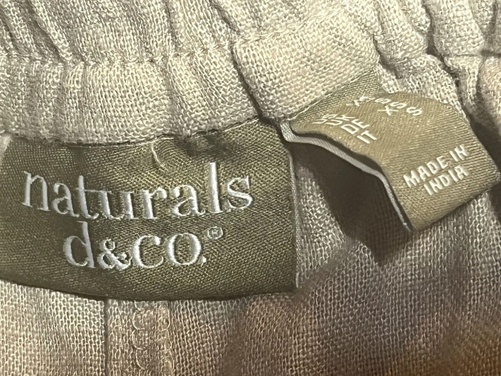 Vintage: No Inseam: 27 1/2 Pattern: Solid Garment Care: Machine Washable Personalize: No Season: Fall, Spring, Summer, Winter Department: Women Accents: Button Seller Notes: “Like new!” Rise: slightly below the waist Size Type: Regular Country/Region of Manufacture: India Fit: Semi-fitted Handmade: No Leg Style: Wide-Leg Occasion: Travel Closure: Elastic waist Size: XS Features: Side Button Ankle Fabric Type: Woven Material: 55% linen/45% viscose Type: Pants Color: Khaki Style: Ankle Front Type: Flat Front Brand: Denim & Co.