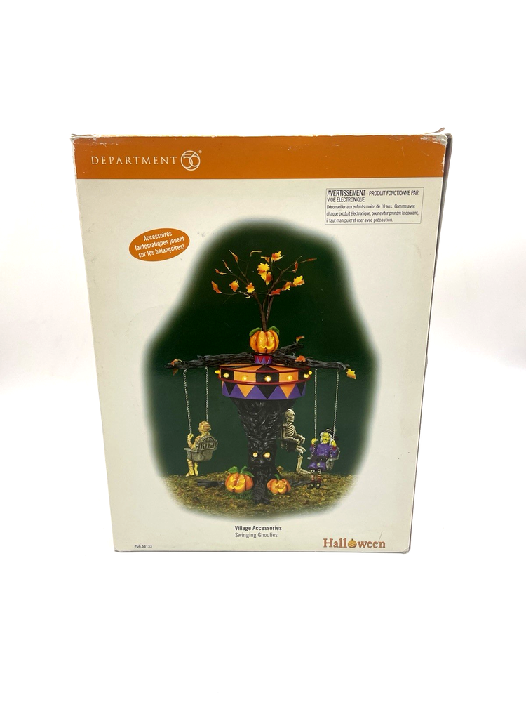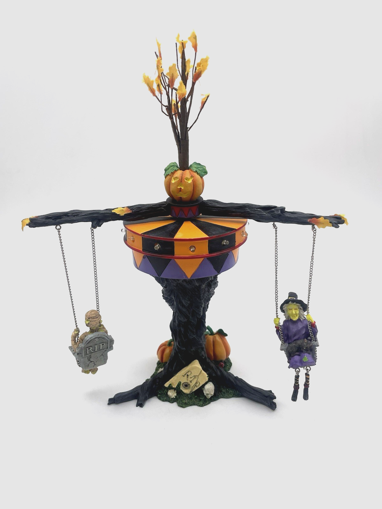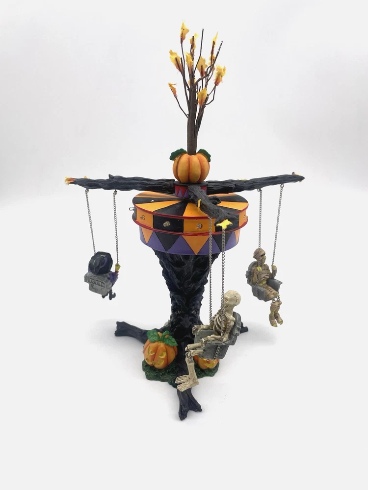 Department 56 Halloween Swinging Ghoulies Village Accessories 53133 - READ. Condition is For Parts or Repair. Lights works well but swinging mechanism is not functional. Please see photos for more details.