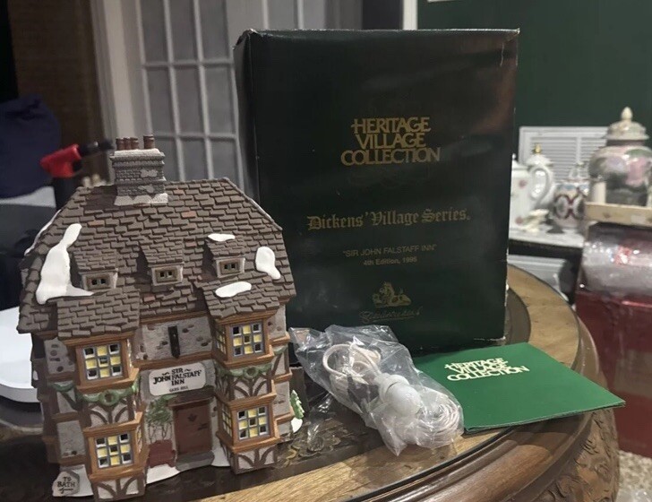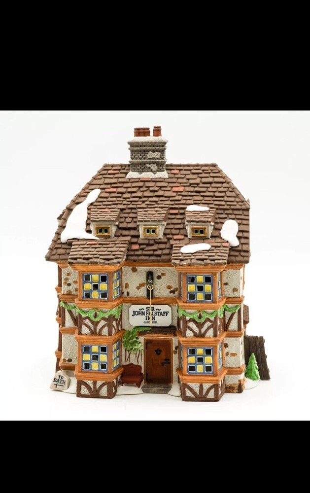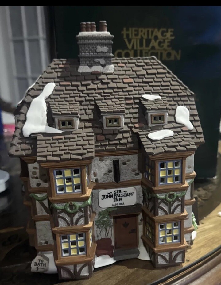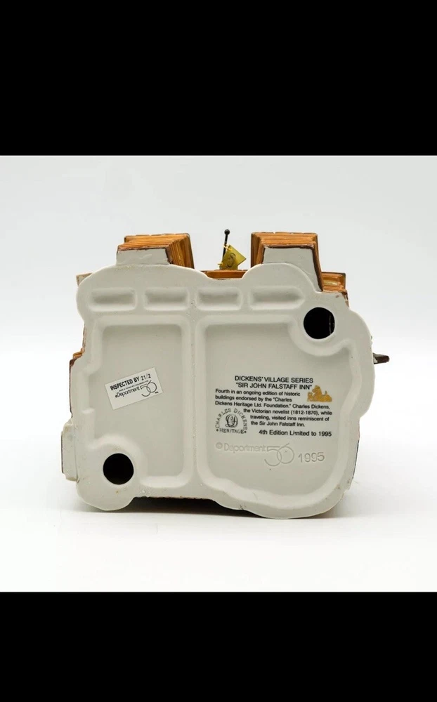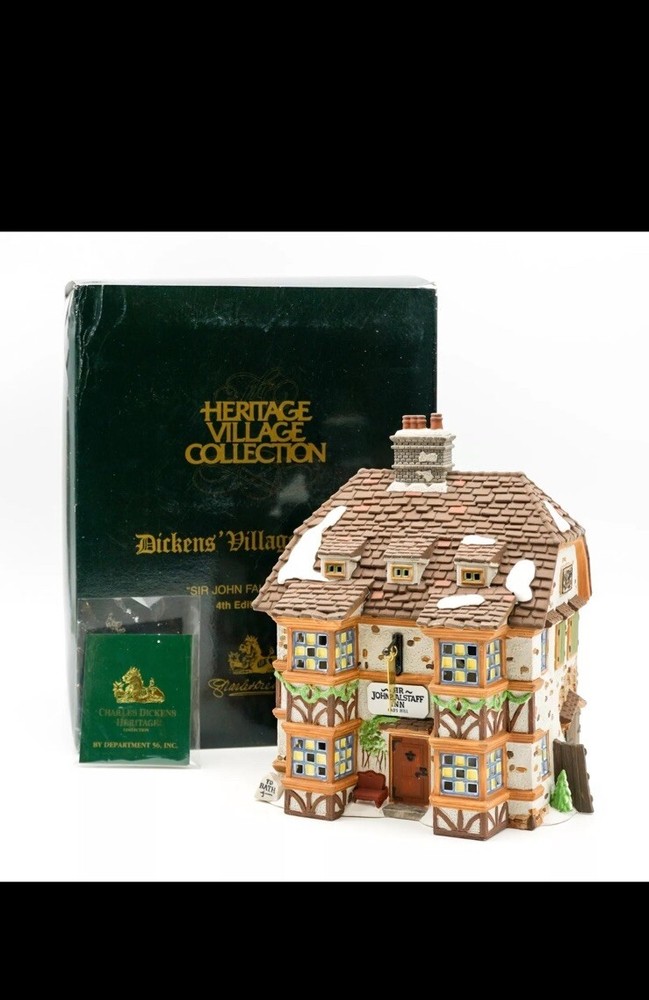 This Department 56 piece features the "Sir John Falstaff Inn" from the Heritage Dickens' Village collection. The asymmetrical ceramic and porcelain figure comes in multicolor and is boxed for storage. It was manufactured in 1995 and is an original, retired piece from the 1990s. The figure depicts Sir John Falstaff Inn and is part of the Dickens Village collection. It is perfect for any room and occasion, and would make a great addition to any collector's holiday village. The packaging is included and the item is suitable for teens, adults, and kids.