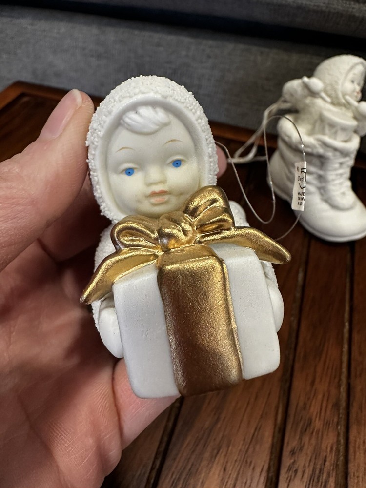 Department 56 Snow Babies Christmas Ornaments Lot of 4, used in good condition. 1-1068-0-1/25’