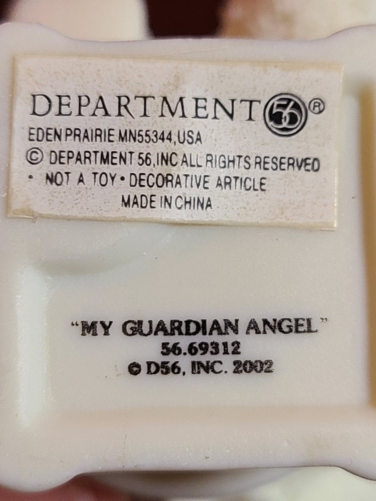 This product is a collectible figurine produced by Department 56. The figurine is part of the Snowbabies collection and is titled "My Guardian." It is 3.5 inches in length.