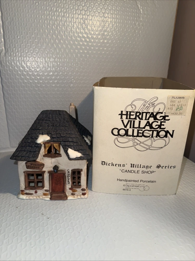 We Strive for nothing less than 5 Star FeedBack and 100% satisfied buyers! If for any reason you are not completely satisfied with your purchase before leaving feedback Please contact us with any questions or concerns. Dept 56 Dickens’ Candle Shop #6515-3 Christmas Village 1984 - Original Box Condition: MINT ORIGINAL BOX NO LIGHT condition see photos original . If there is anything wrong with the item or not as described, please contact me as soon as possible. Item is for sale as it came to us. All items pictured are included in auction. No other accessories are included in auction. please read our descriptions and check our pictures for the best item explanation before purchase. Please read the item description and look at the photos carefully before bidding We will describe the item to the best of our ability. PLEASE ASK QUESTIONS PRIOR TO BIDDING. WE WILL BE MORE THAN HAPPY TO ANSWER QUESTIONS THE BEST WE CAN Buyer assumes responsibility for all shipping and processing charges. THIS AUCTION IS FOR 1 (one) item unless otherwise specified. Bchanes27 reserves the right to end any auction at anytime! All of our items will typically ship within 1 Business day After payment is confirmed. WE ONLY ACCEPT PAYMENT THROUGH PAYPAL AND ONLY SHIP TO U.S. ADDRESSES Except Hawaii, Alaska and Puerto Rico. Be sure to check out our other items and save us as a favorite seller! Keep an eye on our auctions, you never know what we might have! We appreciate you looking at our items, Good luck and Happy Bidding