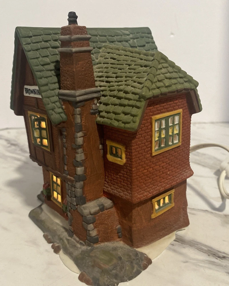 Vintage Dept 56 Dickens' Village Series Browning Cottage 1994 Heritage READ DESC Pre-Owned good condition. Note: Small chip on bottom/side(refer to photos) Not noticeable unless looking for it. Please review all photos for best representation as this is also part of the description. Original Box has some blemishes as shown in photos. Thank you for looking and supporting my small business!