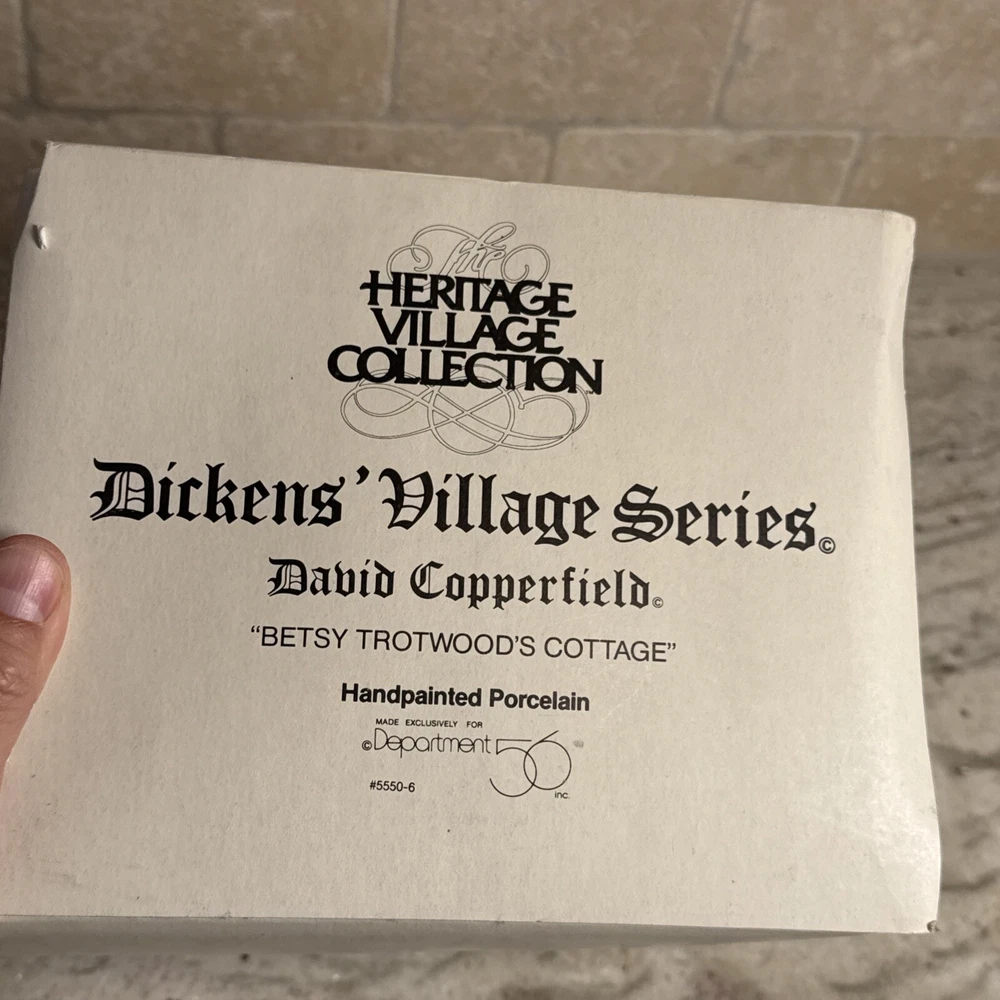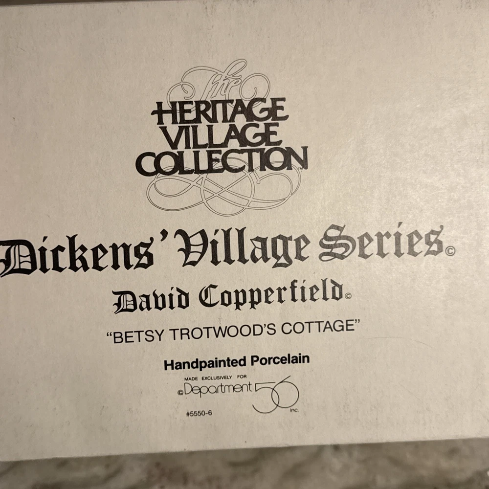Brand:Department 56Color:MulticolorType:Christmas VillageTheme:Cottage, David CopperfieldUPC:Does not applyTime Period Manufactured:1980-1989Year Manufactured:1989Subject:CottageOriginal/Reproduction:OriginalCollection:Dickens VillagePackaging:Boxgtin13:Does not applyFeatures:Hand Painted, RetiredMaterial:PorcelainRoom:Any RoomOccasion:Christmas