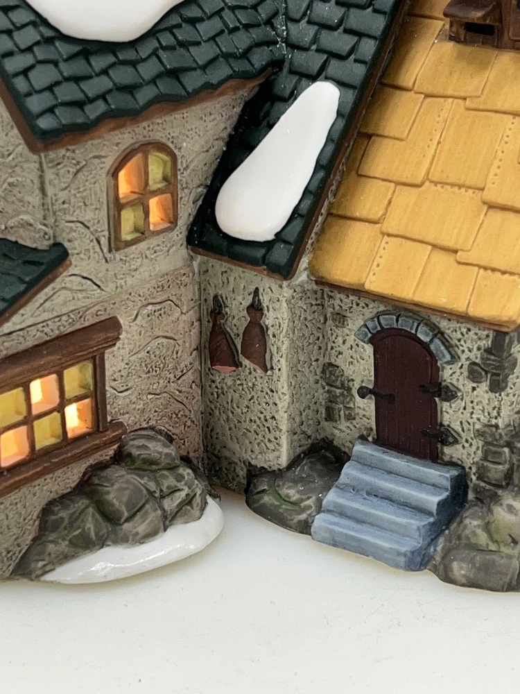 Snowflake Falls 8 Piece Porcelain Toy Castle Set Christmas Village Decor No Bulb