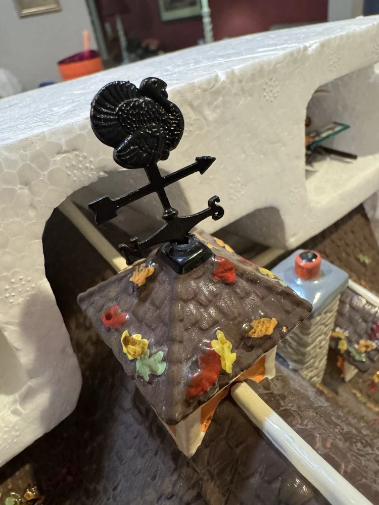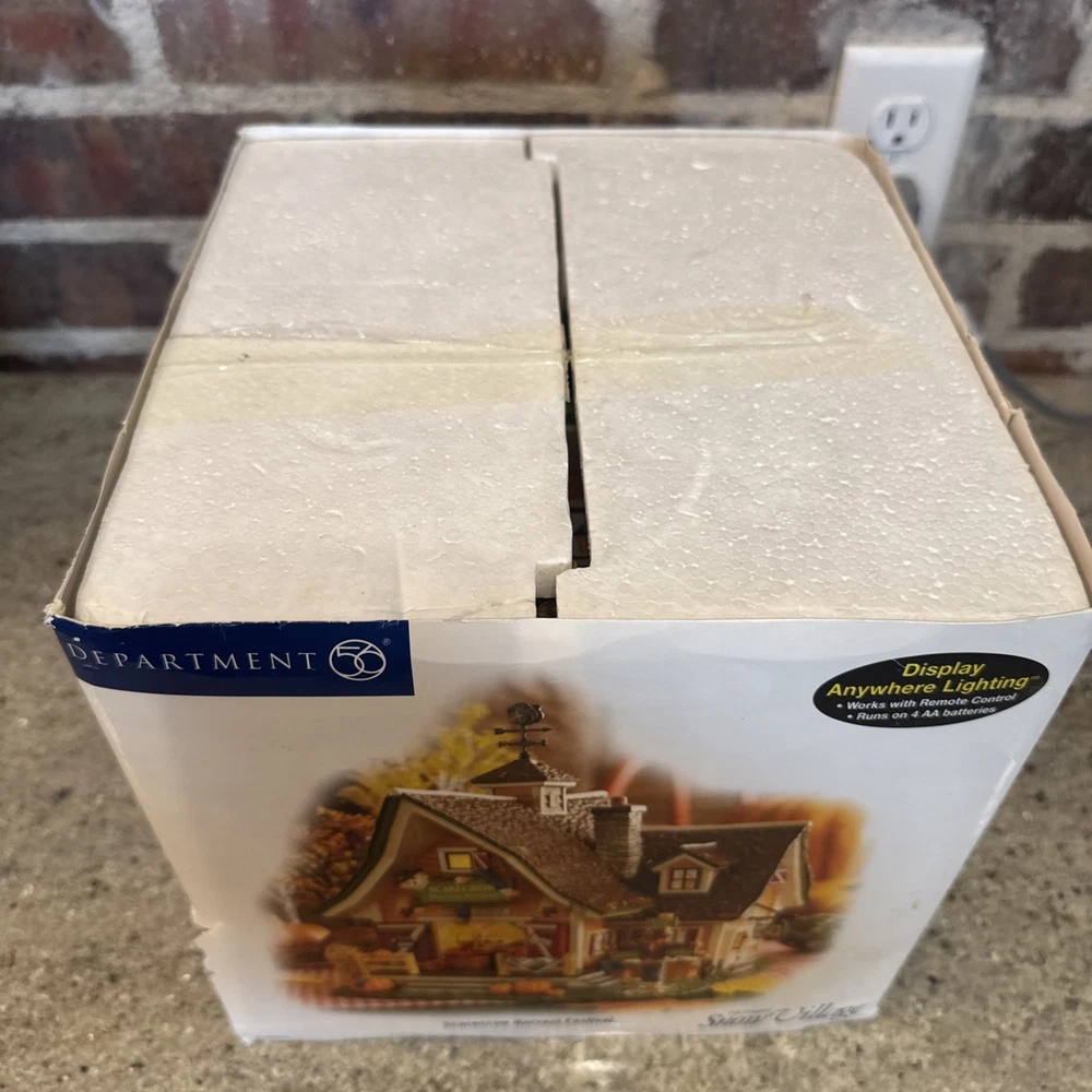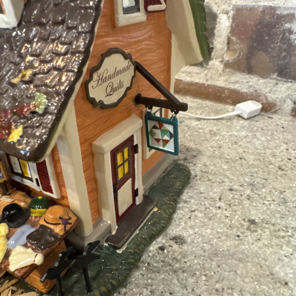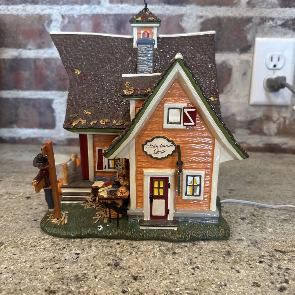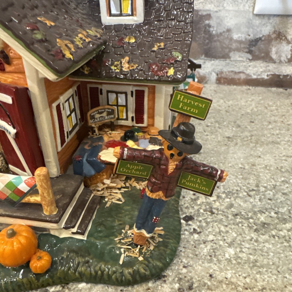 The Dept 56 Snow Village Scarecrow Harvest Festival 2007 # 799932 is a medium-sized collectible house from the Department 56 brand, part of the Snow Village collection. This original piece features a multi-color design with a seasonal fall theme, perfect for adult collectors. It comes in its original box packaging from 2007, making it a unique addition to any village display. Made in China in the 21st century, this scarecrow-themed house captures the essence of autumn villages in a charming and detailed design. The festival sign doesn’t hook on the right side. Please see pictures. I’ll include the small hook that fell off and it could possibly be re-added. Includes all other signs etc. Lighting does work as well. The weather vane is broken at the bottom. Please see the pictures. It’s still fits in the slot, but at times it can lean.
