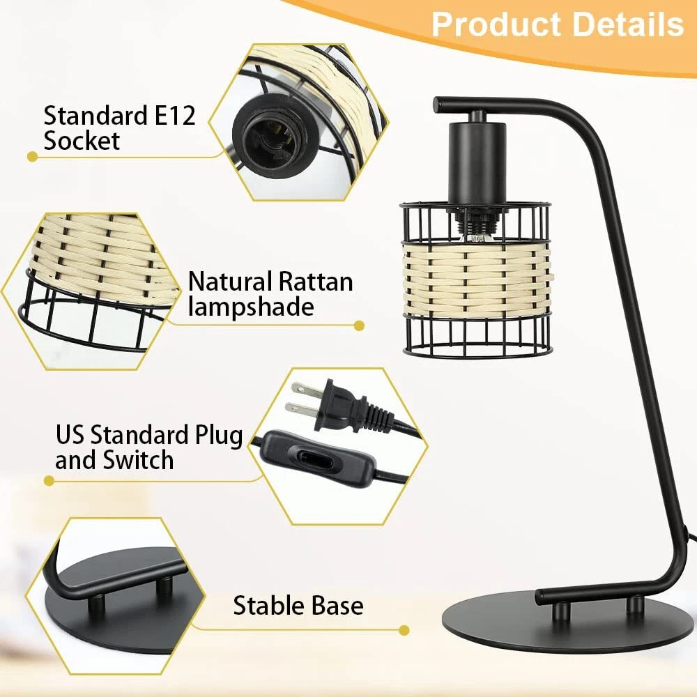 【Unique Metal & Rattan Design】The black table lamp is designed with a painted metal and rattan lampshade. Moreover, it is also an excellent decoration with high-quality lampshade for your room. 【UL E12 Socket & Bulb Included】The modern desk Lamp comes with a 5W LED Bulb for your convenience. With a UL E12 Bulb Socket, the bulb can be replaced as desired.(Max 40W) 【Convenient On/Off Switch & UL-listed Cord】For safety and reliable operation, the on/off button switch located on UL-listed cord. So if you want to turn on/off the bedside lamp, you don’t have to get up. Perfect pick for bedroom, living room and study. 【Eye-Caring & Easy Installation】 If you are searching for an eye-caring LED table lamp for your spaces, this LED desk lamp is definitely the one you need! No more eye fatigue!Brightens your college dorm, bedroom, office. 【Depuley Warranty】Depuley is committed to create high-quality products and service for you. If you have any questions with this rattan table lamp, we will reply you within 24 hours.
