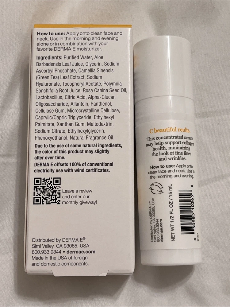 Derma.E Vitamin C Concentrated Serum w/Hyaluronic Acid, 0.5 oz, BB: 11/2025 New.