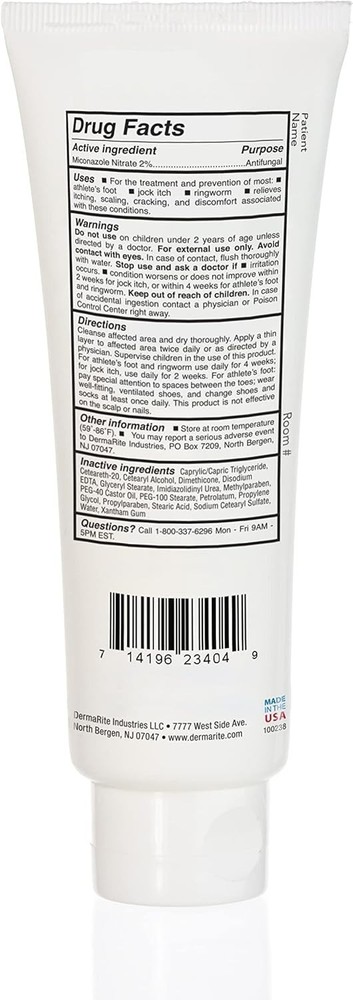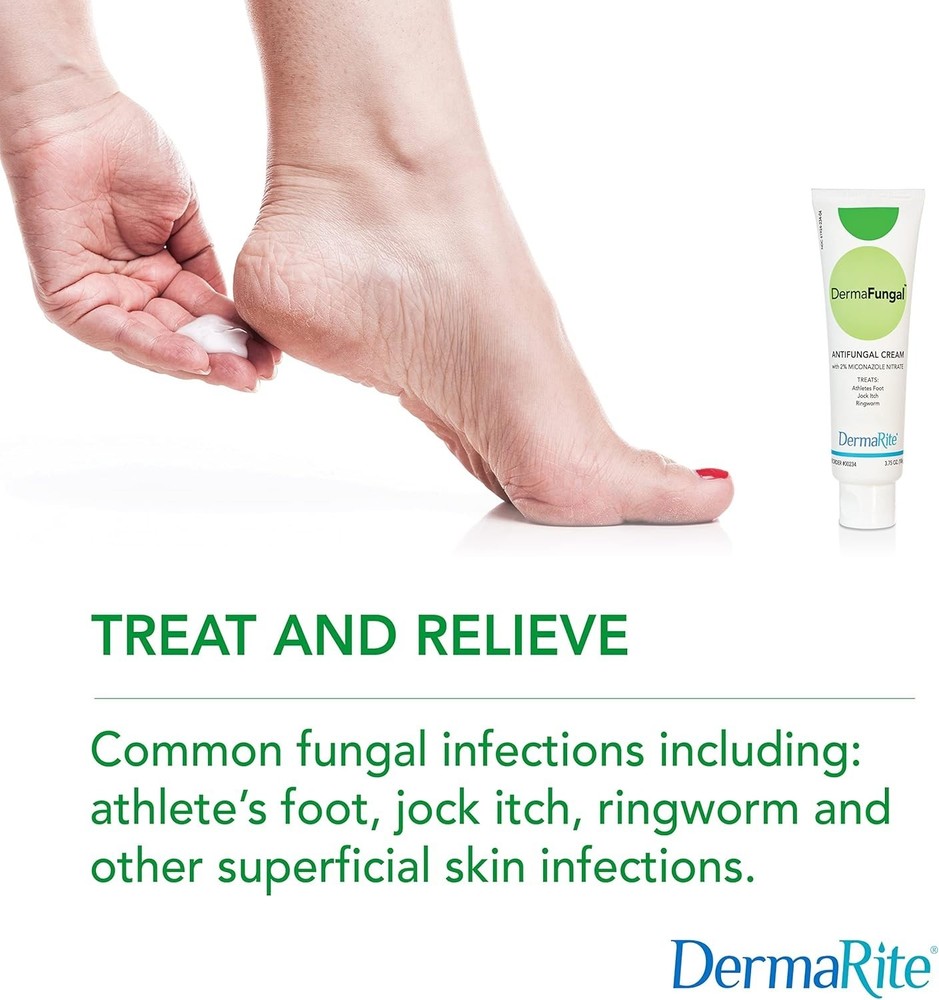 DermaFungal Antifungal Cream 3.75 oz Miconazole Nitrate for Skin Relief About this item : TRUSTED CARE: DermaRite has been providing cost-effective, dependable skin and wound care products for over 20 years. TREAT ITCHING, BURNING SKIN FAST: Get quick relief from the soreness, itching, cracking and scaling skin caused by athlete’s foot, jock itch, and ringworm. FAST, EFFECTIVE RELIEF: DermaFungal is a nonprescription antifungal cream containing 2% Miconazole Nitrate that is applied directly to affected areas of your skin PROVEN ANTIFUNGAL: Miconazole Nitrate is a highly effective ingredient used in many antifungal creams and sprays. Applied directly to the affected area, it quickly helps treat and relieve symptoms of these conditions. Pack of 1 Tube (3.75 oz)