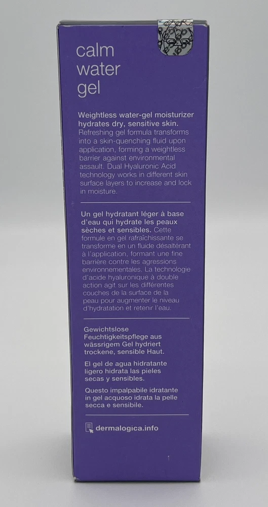 Dermalogica's Calm Water Gel is a weightless, hyaluronic acid water-gel moisturizer that hydrates dry, sensitive skin. Give dry, normal or sensitive skin the moisture it craves. Refreshing gel formula transforms into a skin-quenching fluid upon application, forming a weightless barrier on the skin.