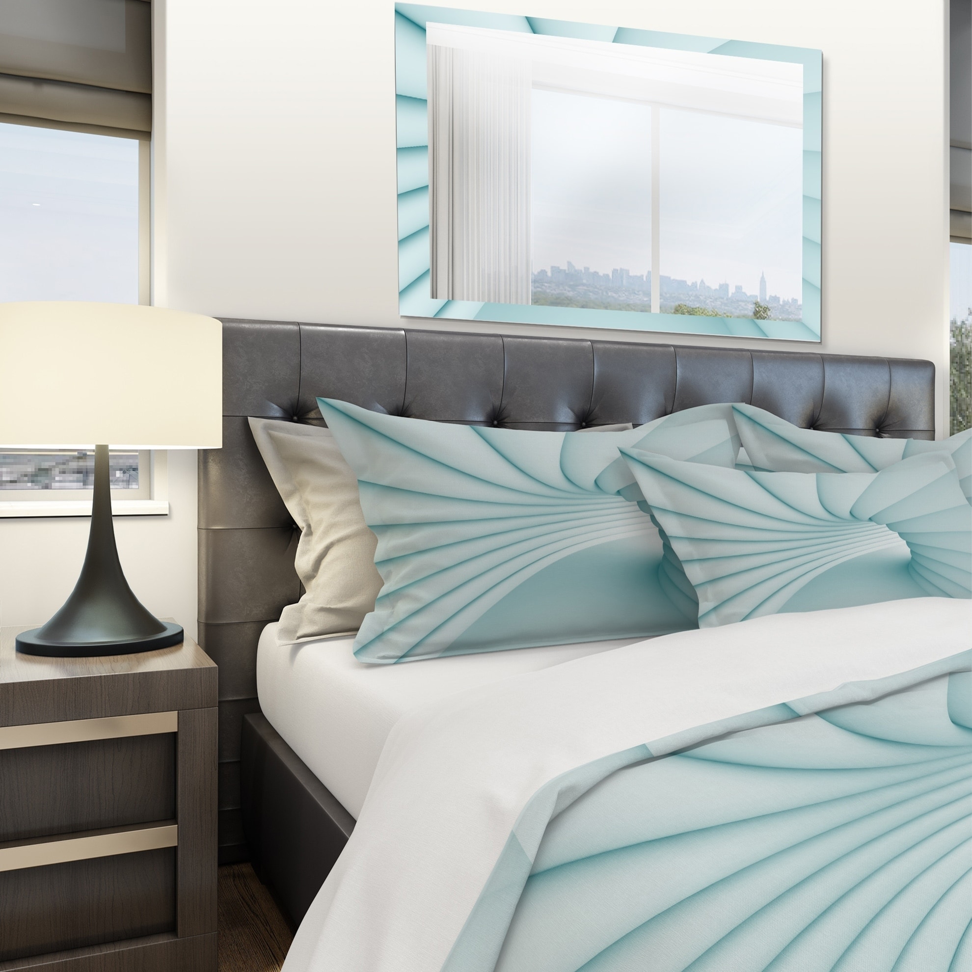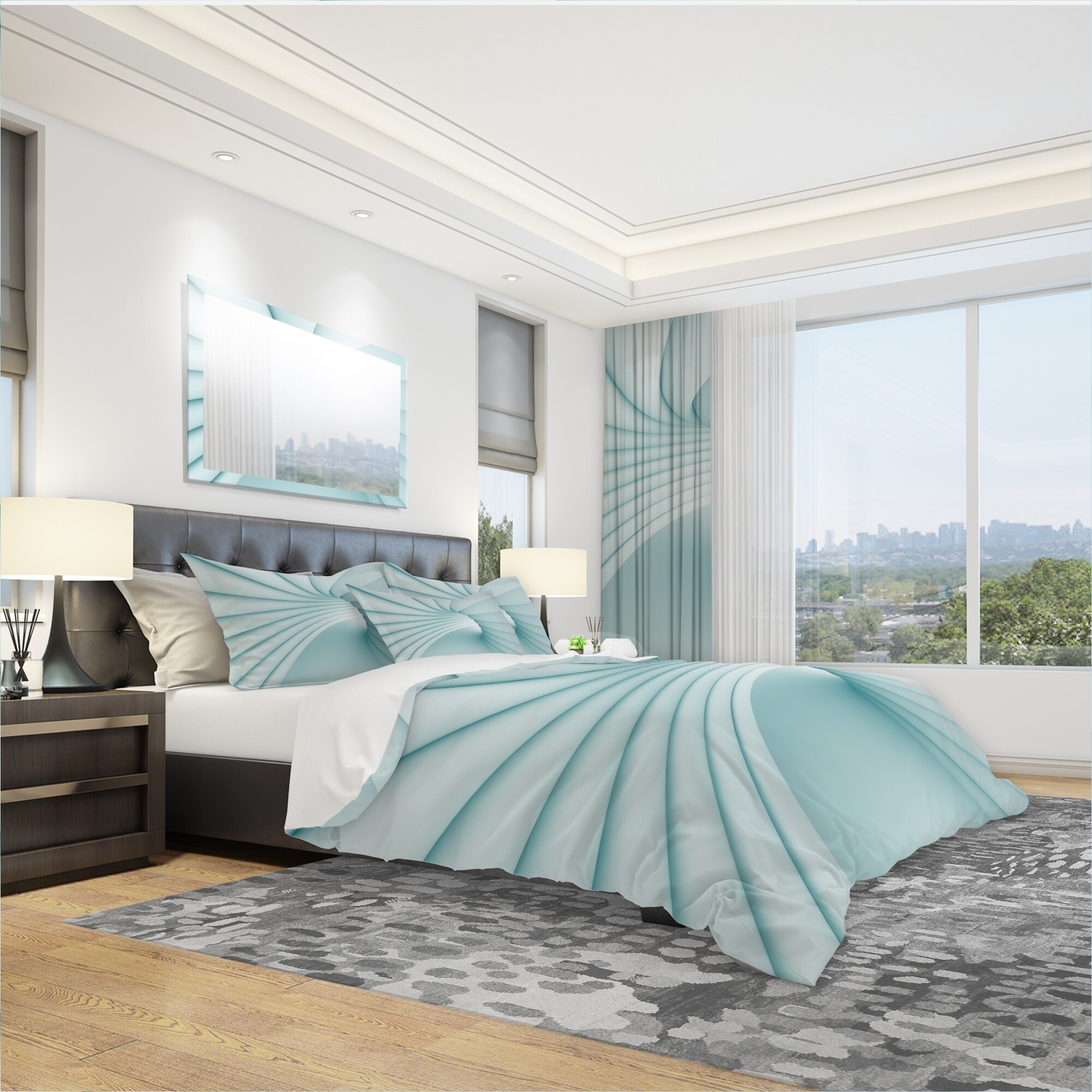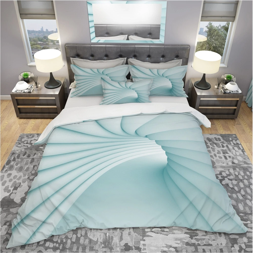 Transform your bedroom into a beautiful and comfortable sanctuary with this Modern & Contemporary Bedding Set. The 3D Illustration of Blue Tunnel design boasts rich colors printed with high density Italian ink on ultra-soft, wrinkle-resistant microfiber polyester, ensuring a luxurious and comfortable night's sleep. This set includes one duvet cover and two shams, available in twin, queen, and king sizes. The elegant and trendy design is perfect for adding a stylish touch to your space. Made in Canada.Features: High density Italian ink creates extra vibrant colors Ultra-soft, lightweight, and odorless microfiber polyester for ultimate comfort Complete set includes one bed cover and two standard pillow shams Elegant and soft colors add brightness to your bedroom Made in CanadaOther Free Shipping Over $49.99* Details Designart '3D Illustration of Blue Tunnel' Modern & Contemporary Bedding Set - Product Description: Transform your bedroom into a beautiful and comfortable sanctuary with this Modern & Contemporary Bedding Set. The 3D Illustration of Blue Tunnel design boasts rich colors printed with high density Italian ink on ultra-soft, wrinkle-resistant microfiber polyester, ensuring a luxurious and comfortable night's sleep. This set includes one duvet cover and two shams, available in twin, queen, and king sizes. The elegant and trendy design is perfect for adding a stylish touch to your space. Made in Canada. Features: High density Italian ink creates extra vibrant colors Ultra-soft, lightweight, and odorless microfiber polyester for ultimate comfort Complete set includes one bed cover and two standard pillow shams Elegant and soft colors add brightness to your bedroom Made in Canada Other Details: MaterialPolyester PatternAbstract ColorWhite StyleModern Contemporary Abstract, Modern & Contemporary, Modern ReversibleNo Dimensions: King1 Duvet Cover (104" x 88") and 2 King Shams (20" x 36") Queen1 Duvet Cover (88" x 88") and 2 Standard Shams (16" x 26") Twin1 Duvet Cover (68" x 88") and 1 Standard Sham (16" x 26") Care Instructions: Machine wash on cold gentle cycle. Wash separately on first wash. Use only non-chlorine bleach when needed. Tumble dry low. Remove promptly. NotePillow cases and comforter insert are not included but can be purchased separately. Decorative wall art and throw pillows to match the set are available but sold separately.