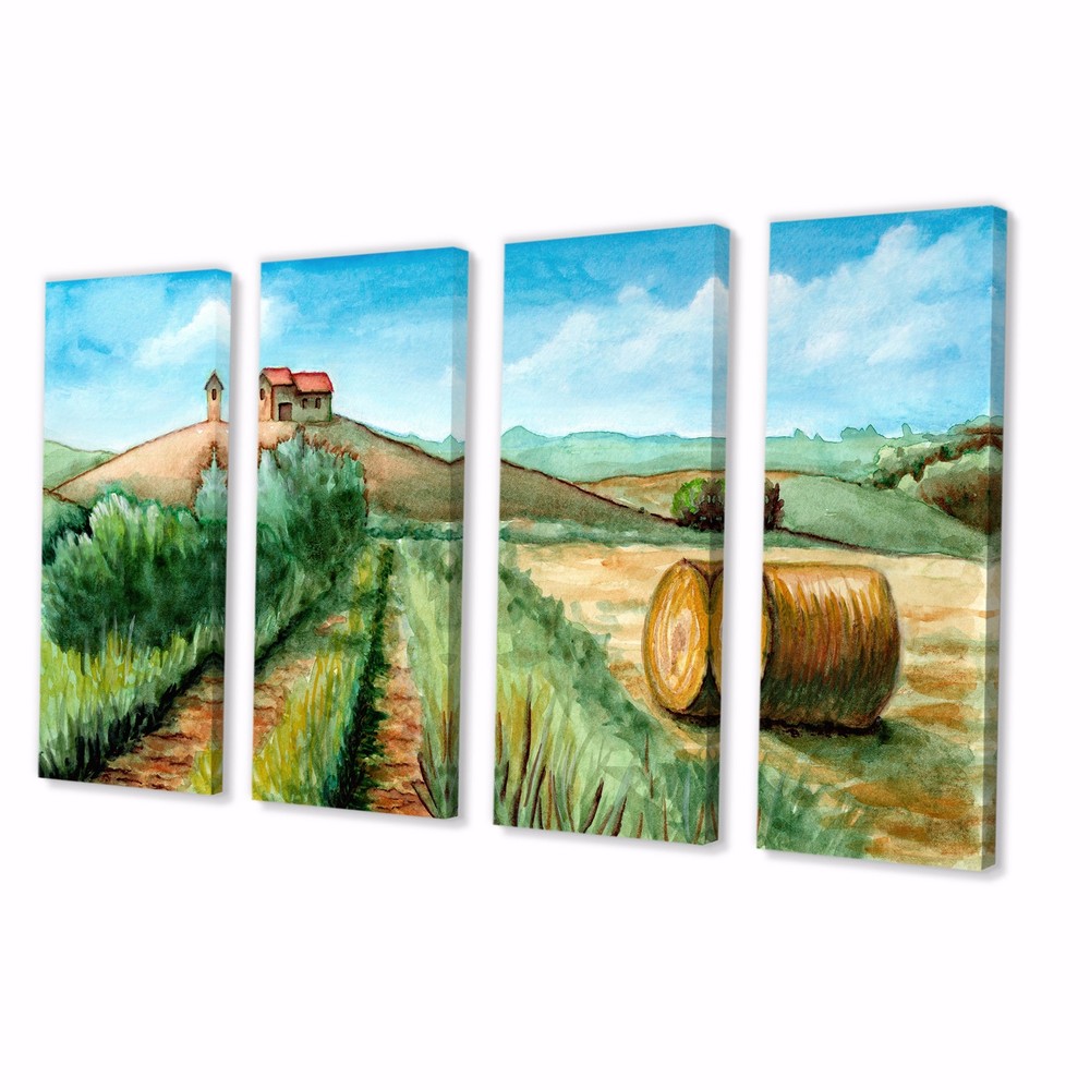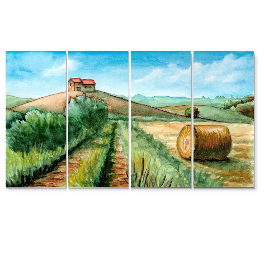 This beautiful Rural Harvest Landscape Multipanels canvas art is printed using the highest quality fade-resistant ink on canvas. Every one of our fine art giclee canvas prints is printed on premium quality cotton canvas, using the finest quality inks which will not fade over time. Each giclee print is stretched tightly over a 1-inch wood subframe ensuring the canvas is taught and does not buckle. This canvas art print is gallery-wrapped (the design continues on the sides), giving it a real art gallery feel. All of our canvas prints are carefully packaged with plastic protection, fragile labeling, and sturdy boxes to ensure safe delivery. Every canvas print arrives ready to hang on the wall, with the hanging kits included.- Style : Country- Subject : Landscapes, Country Charm- Color : Free Shipping Over $49.99* Details Designart "Rural Harvest Landscape" Country Canvas Wall Art Print - 48x28 - 4 Product Description: This beautiful Rural Harvest Landscape Multipanels canvas art is printed using the highest quality fade-resistant ink on canvas. Every one of our fine art giclee canvas prints is printed on premium quality cotton canvas, using the finest quality inks which will not fade over time. Each giclee print is stretched tightly over a 1-inch wood subframe ensuring the canvas is taught and does not buckle. This canvas art print is gallery-wrapped (the design continues on the sides), giving it a real art gallery feel. All of our canvas prints are carefully packaged with plastic protection, fragile labeling, and sturdy boxes to ensure safe delivery. Every canvas print arrives ready to hang on the wall, with the hanging kits included. - Style Country - Subject Landscapes, Country Charm - Color Green - This canvas giclee print is gallery-wrapped (the design continues on the sides) , giving it a real art gallery feel. - Premium quality cotton canvas. - Arrives ready to hang on the wall - Easy to Hang