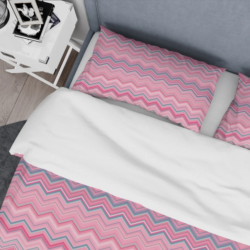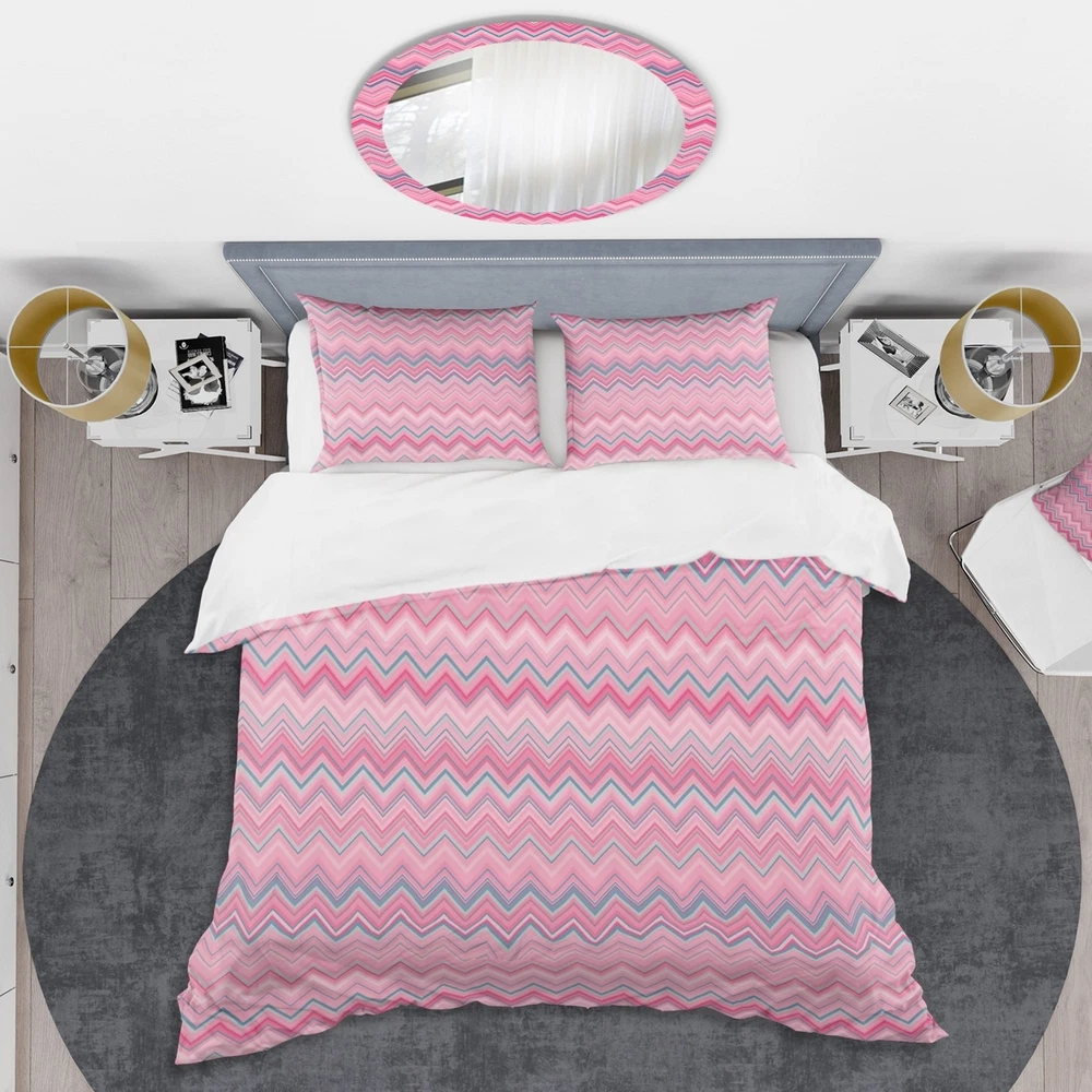 Add a touch of sophistication and comfort to your bedroom with this Mid-Century Modern Duvet Cover Set. The Abstract Retro Geometric III design boasts vibrant colors that stay true to form thanks to high-density Italian ink. Made from 100% microfiber polyester, it is ultra-soft and lightweight, ensuring a cozy and peaceful sleep. This set includes one duvet cover and two shams, available in twin, queen, and king sizes. The wrinkle-resistant fabric is both elegant and practical, perfectly complementing any bedroom decor.Features: High-density Italian ink creates extra-vibrant colors 100% microfiber polyester for down-like comfort and wrinkle resistance Includes one duvet cover and two shams for a complete, stylish look Available in twin, queen, and king sizes Made in Canada Comforter Free Shipping Over $49.99* Details Designart 'Abstract Retro Geometric III' Mid-Century Duvet Cover Set Product Description: Add a touch of sophistication and comfort to your bedroom with this Mid-Century Modern Duvet Cover Set. The Abstract Retro Geometric III design boasts vibrant colors that stay true to form thanks to high-density Italian ink. Made from 100% microfiber polyester, it is ultra-soft and lightweight, ensuring a cozy and peaceful sleep. This set includes one duvet cover and two shams, available in twin, queen, and king sizes. The wrinkle-resistant fabric is both elegant and practical, perfectly complementing any bedroom decor. Features: High-density Italian ink creates extra-vibrant colors 100% microfiber polyester for down-like comfort and wrinkle resistance Includes one duvet cover and two shams for a complete, stylish look Available in twin, queen, and king sizes Made in Canada Comforter insert NOT INCLUDED Pillow cases available separately Other Details: MaterialPolyester PatternGeometric ColorPink StyleVintage Abstract, Mid-Century Modern, Abstract ReversibleNo King: 1 Duvet Cover104 inches wide x 88 inches long 2 King Shams20 inches wide x 36 inches long Queen: 1 Duvet Cover88 inches wide x 88 inches long 2 Standard Shams16 inches wide x 26 inches long Twin: 1 Duvet Cover68 inches wide x 88 inches long 1 Standard Sham16 inches wide x 26 inches long Care InstructionsMachine wash on cold gentle cycle. Wash separately on first wash. Use only non-chlorine bleach when needed. Tumble dry low. Remove promptly.