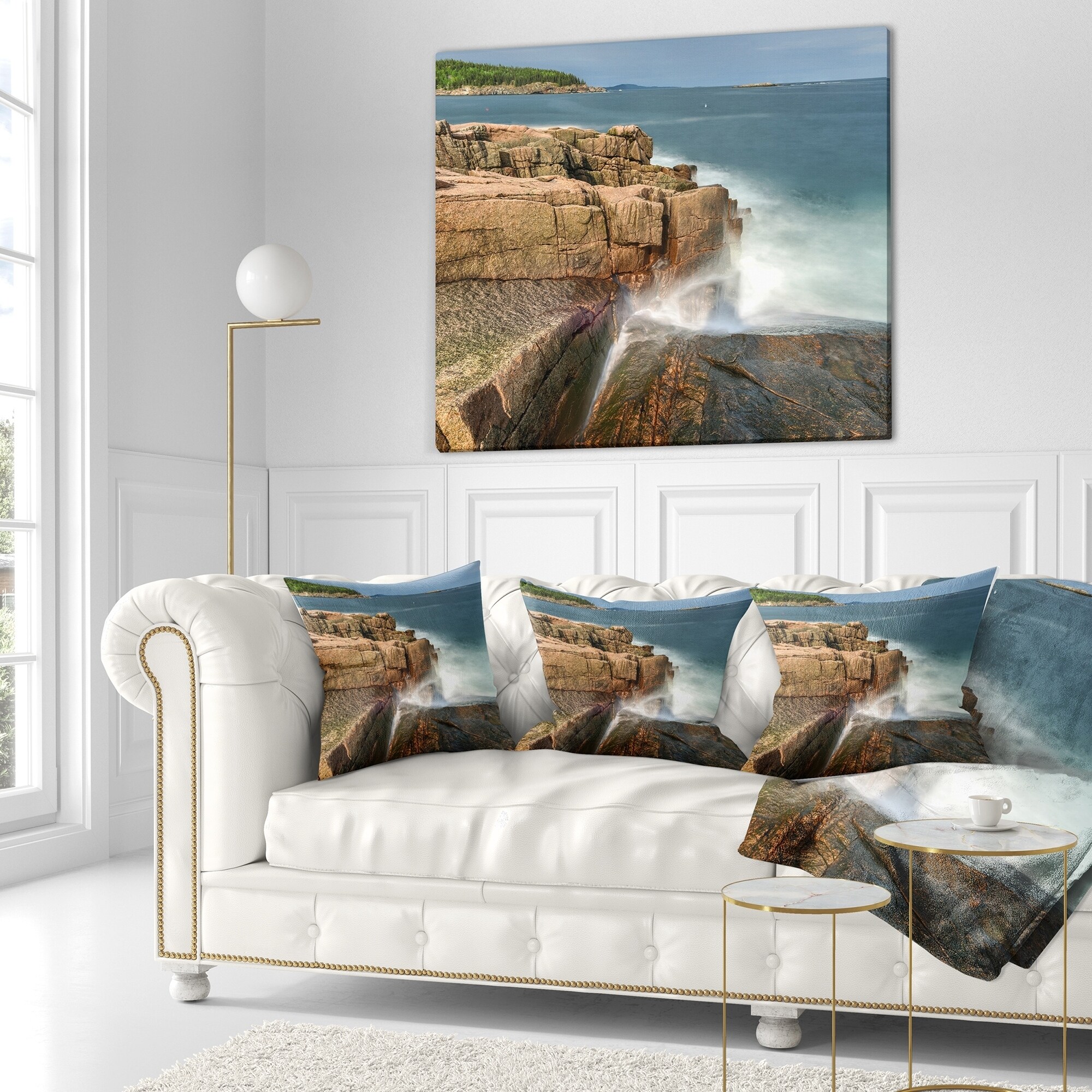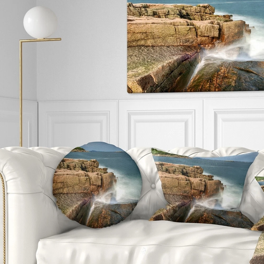 Decorative Throw Pillows for Couch Bed Sofa with Zip CoversAn easy, fun way to add a pop of color or bring new life to any room in your home or office is with these beautiful Sea & Shore throw pillows. Dress up your bed, sofa or lounger with this decorative design art pillows. Perfect as Coastal bedroom décor, lounge décor Beach living room décor. It adds a fun accent to any room. Throw pillows really do work wonders: they can transform any room from uninviting discomfort to warm and welcoming. And they really do go almost anywhere - arrange a couple on the couch or sofa, place one in your overstuffed chair for extra coziness, toss a couple on the bed and prop yourself up for a great read.These Sea & Shore pillow is printed using High Color Density Italian inks to create a vibrantly Free Shipping Over $49.99* Details Designart 'Acadia National Park Coast' Oversized Beach Throw Pillow Product Description: Decorative Throw Pillows for Couch Bed Sofa with Zip Covers An easy, fun way to add a pop of color or bring new life to any room in your home or office is with these beautiful Sea & Shore throw pillows. Dress up your bed, sofa or lounger with this decorative design art pillows. Perfect as Coastal bedroom décor, lounge décor Beach living room décor. It adds a fun accent to any room. Throw pillows really do work wondersthey can transform any room from uninviting discomfort to warm and welcoming. And they really do go almost anywhere - arrange a couple on the couch or sofa, place one in your overstuffed chair for extra coziness, toss a couple on the bed and prop yourself up for a great read. These Sea & Shore pillow is printed using High Color Density Italian inks to create a vibrantly colored, sharp artwork. Features: Perfect accent to any furniture piece Basic shapes with a modern graphic design twist Printed on 100% light weight polyester Cushion filled with 100% polyester fill Wrinkle resistant fabric Zip Closure so you can remove the pillow from its' cover Down-like comfort - Odorless 100% Hypoallergenic Machine Wash Cold Separately, Gently Cycle Only, No bleach, hang to dry Print on Demand with High Density Italian Ink Available in Several sizes Attribute :Coastal, Beach, Tropical Subject Sea & Shore, Nautical, Landscapes