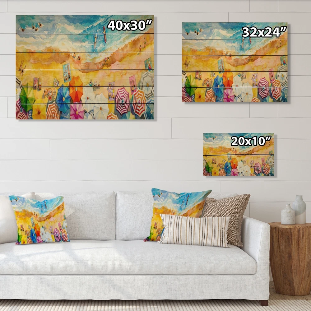 Alas, a modern take on wood wall art. Once typically a wall art piece found only in rustic or farmhouse style decor settings, this Beach wood wall art will easily fit into even the most contemporary of designs.Using the highest quality 6 Color Canon UV Ink, this Nautical & Coastal wood wall art incorporates several aspects of fine design into one stunning piece. With its slightly visible wood grain appearing through the colors and sleekly finished edges, it is a wonderful choice for any room in your home or office, being it a traditional or modern space. As each piece of wood has natural grain differences from the next, each of these wood wall arts is a truly unique addition to your space.Each Wood wall art is 100% handmade in Canada on Natural pine wood, using the highest quality ink Free Shipping Over $49.99* Details Designart 'Aerial Pastel Beach Miami XIV' Nautical & Coastal Wood Wall Art Décor Product Description: Alas, a modern take on wood wall art. Once typically a wall art piece found only in rustic or farmhouse style decor settings, this Beach wood wall art will easily fit into even the most contemporary of designs. Using the highest quality 6 Color Canon UV Ink, this Nautical & Coastal wood wall art incorporates several aspects of fine design into one stunning piece. With its slightly visible wood grain appearing through the colors and sleekly finished edges, it is a wonderful choice for any room in your home or office, being it a traditional or modern space. As each piece of wood has natural grain differences from the next, each of these wood wall arts is a truly unique addition to your space. Each Wood wall art is 100% handmade in Canada on Natural pine wood, using the highest quality ink which will not fade over time. Available in Differents sizes - OrientationHorizontal - SubjectBeach TypeWood Wall Art, Fine Art, Wood Fine Art, Print on Plaque - Arrives ready to hang on the wall with hanging kit included - MaterialMade with 100% natural pine wood - StyleNautical & Coastal - Number of Pieces1 - ColorYellow