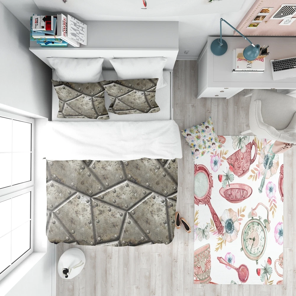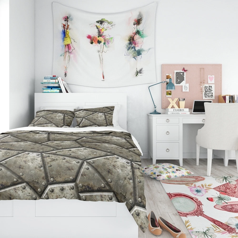 Indulge in a luxurious and comfortable sleeping experience with this Bohemian & Eclectic Bedding Set. Featuring an elegant and trendy Armor Texture design, the set is printed with high-density Italian ink for extra vibrancy. Made from 100% microfiber polyester, the set is ultra-soft and lightweight, ensuring a cozy and refreshing sleep all night long. The set includes one duvet cover and two shams, making it a complete and stylish addition to your bedroom decor. Available in twin, queen, and king sizes, this set is wrinkle-resistant, odorless, and easy to care for.Features: High-density Italian ink for extra vibrancy 100% microfiber polyester for softness and comfort Set includes duvet cover and two shams Trendy and fun colors to brighten up your bedroom Made in Canada Comforter and Free Shipping Over $49.99* Details Designart 'Armor Texture' Bohemian & Eclectic Teen Bedding Set - Duvet Cover & Product Description: Indulge in a luxurious and comfortable sleeping experience with this Bohemian & Eclectic Bedding Set. Featuring an elegant and trendy Armor Texture design, the set is printed with high-density Italian ink for extra vibrancy. Made from 100% microfiber polyester, the set is ultra-soft and lightweight, ensuring a cozy and refreshing sleep all night long. The set includes one duvet cover and two shams, making it a complete and stylish addition to your bedroom decor. Available in twin, queen, and king sizes, this set is wrinkle-resistant, odorless, and easy to care for. Features: High-density Italian ink for extra vibrancy 100% microfiber polyester for softness and comfort Set includes duvet cover and two shams Trendy and fun colors to brighten up your bedroom Made in Canada Comforter and pillow inserts not included Machine washable for easy care Additional Details: MaterialPolyester PatternAbstract ColorGrey & Silver StyleModern Contemporary Abstract, Bohemian & Eclectic, Abstract ReversibleNo Twin: 1 Duvet Cover68 inches wide x 88 inches long 1 Standard Sham16 inches wide x 26 inches long Queen: 1 Duvet Cover88 inches wide x 88 inches long 2 Standard Shams16 inches wide x 26 inches long King: 1 Duvet Cover104 inches wide x 88 inches long 2 King Shams20 inches wide x 36 inches long