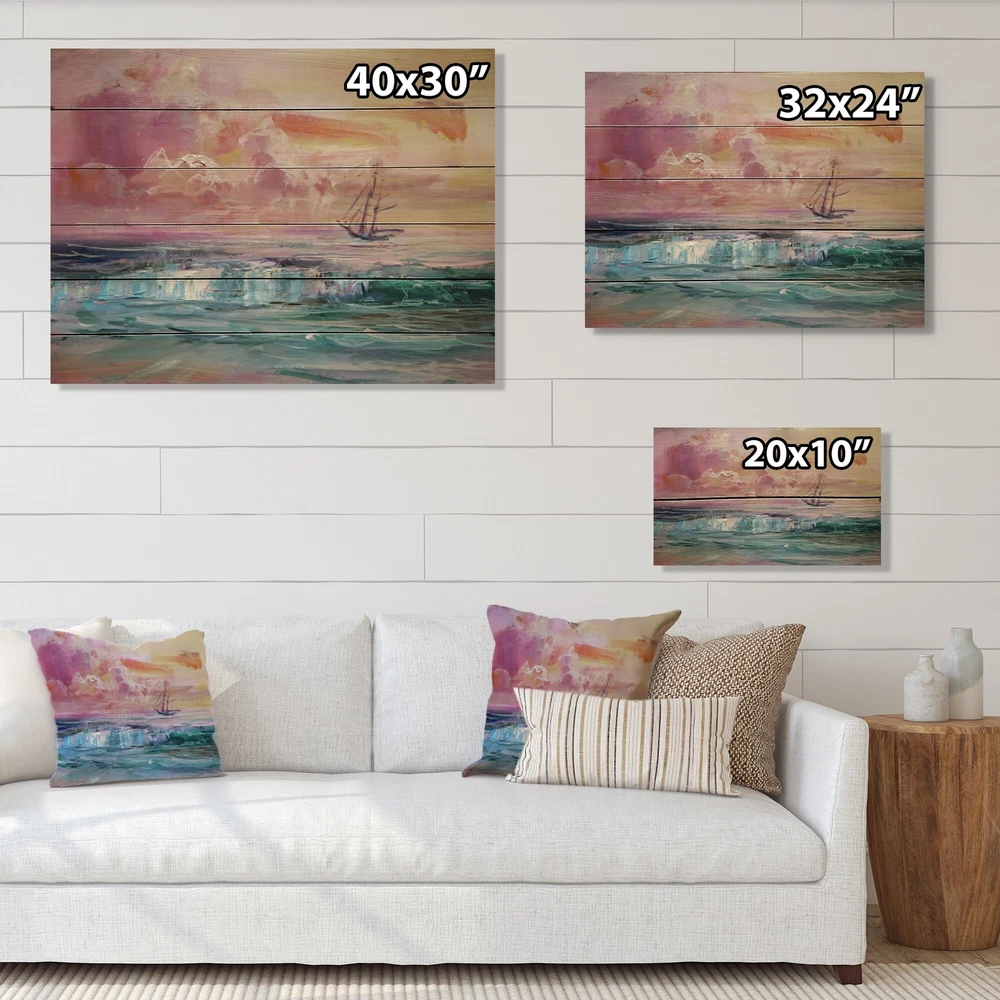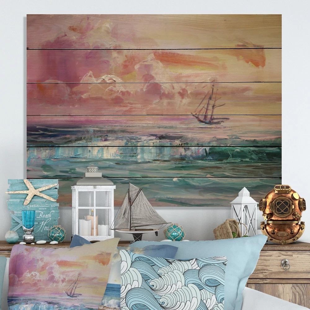Alas, a modern take on wood wall art. Once typically a wall art piece found only in rustic or farmhouse style decor settings, this sea & Shore wood wall art will easily fit into even the most contemporary of designs.Using the highest quality 6 Color Canon UV Ink, this Nautical & Coastal wood wall art incorporates several aspects of fine design into one stunning piece. With its slightly visible wood grain appearing through the colors and sleekly finished edges, it is a wonderful choice for any room in your home or office, being it a traditional or modern space. As each piece of wood has natural grain differences from the next, each of these wood wall arts is a truly unique addition to your space.Each Wood wall art is 100% handmade in Canada on Natural pine wood, using the highest quality Free Shipping Over $49.99* Details Designart 'Battle Sea Ship On Purple Sunset' Nautical & Coastal Wood Wall Art - Product Description: Alas, a modern take on wood wall art. Once typically a wall art piece found only in rustic or farmhouse style decor settings, this sea & Shore wood wall art will easily fit into even the most contemporary of designs. Using the highest quality 6 Color Canon UV Ink, this Nautical & Coastal wood wall art incorporates several aspects of fine design into one stunning piece. With its slightly visible wood grain appearing through the colors and sleekly finished edges, it is a wonderful choice for any room in your home or office, being it a traditional or modern space. As each piece of wood has natural grain differences from the next, each of these wood wall arts is a truly unique addition to your space. Each Wood wall art is 100% handmade in Canada on Natural pine wood, using the highest quality ink which will not fade over time. Available in Differents sizes - OrientationHorizontal - Subjectsea & Shore TypeWood Wall Art, Fine Art, Wood Fine Art, Print on Plaque - Arrives ready to hang on the wall with hanging kit included - MaterialMade with 100% natural pine wood - StyleNautical & Coastal - Number of Pieces1 - ColorBlue
