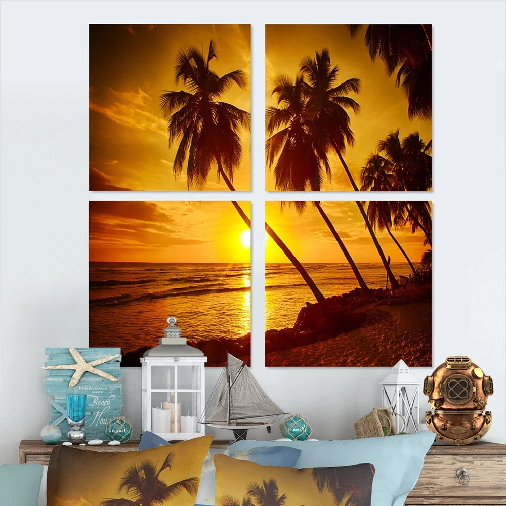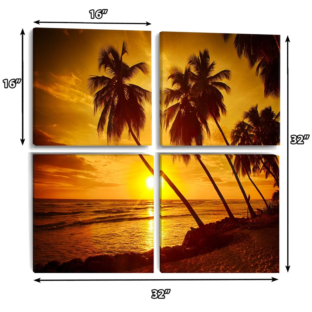 This beautiful Beach Sunset in Island Barbados Multipanels canvas art is printed using the highest quality fade-resistant ink on canvas. Every one of our fine art giclee canvas prints is printed on premium quality cotton canvas, using the finest quality inks which will not fade over time. Each giclee print is stretched tightly over a 1-inch wood subframe ensuring the canvas is taught and does not buckle. This canvas art print is gallery-wrapped (the design continues on the sides), giving it a real art gallery feel. All of our canvas prints are carefully packaged with plastic protection, fragile labeling, and sturdy boxes to ensure safe delivery. Every canvas print arrives ready to hang on the wall, with the hanging kits included.- Style : Nautical & Coastal- Subject : Beach- Color : Free Shipping Over $49.99* Details Designart "Beach Sunset in Island Barbados" Sea & Shore Canvas Wall Art Print Product Description: This beautiful Beach Sunset in Island Barbados Multipanels canvas art is printed using the highest quality fade-resistant ink on canvas. Every one of our fine art giclee canvas prints is printed on premium quality cotton canvas, using the finest quality inks which will not fade over time. Each giclee print is stretched tightly over a 1-inch wood subframe ensuring the canvas is taught and does not buckle. This canvas art print is gallery-wrapped (the design continues on the sides), giving it a real art gallery feel. All of our canvas prints are carefully packaged with plastic protection, fragile labeling, and sturdy boxes to ensure safe delivery. Every canvas print arrives ready to hang on the wall, with the hanging kits included. - Style Nautical & Coastal - Subject Beach - Color Multi-Color - This canvas giclee print is gallery-wrapped (the design continues on the sides) , giving it a real art gallery feel. - Premium quality cotton canvas. - Arrives ready to hang on the wall - Easy to Hang