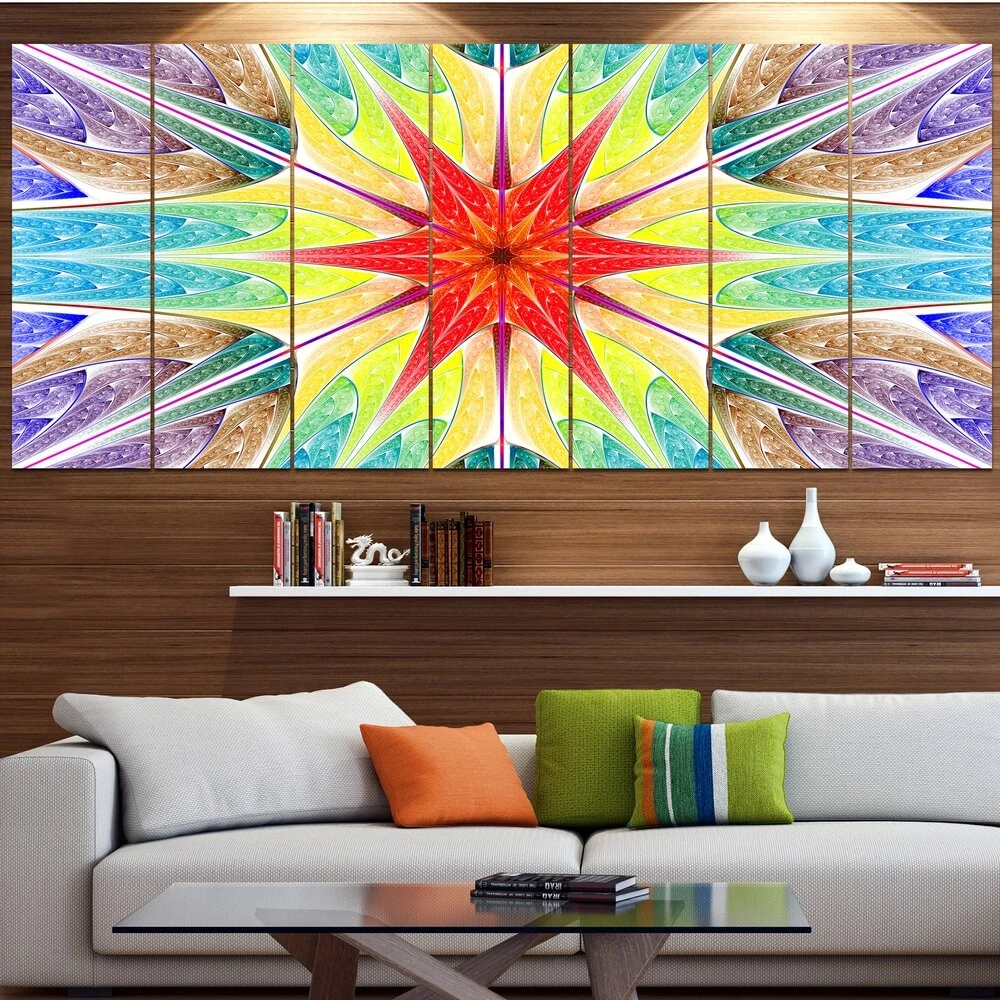 This beautiful Landscapes Canvas Art is printed using the highest quality fade resistant ink on canvas. Every one of our fine art giclee canvas prints is printed on premium quality cotton canvas, using the finest quality inks which will not fade over time. Each giclee print is stretched tightly over a 1 inch wood sub frame ensuring the canvas is taught and does not buckle. This canvas art print is gallery-wrapped (the design continues on the sides) , giving it a real art gallery feel. All of our canvas prints are carefully packaged in inflated cushion wrap, fragile labeling and sturdy boxes to ensure a safe delivery. Every canvas print arrives ready to hang on the wall, with the hanging kits includedShape: RectangleOrientation: HorizontalSubject: AbstractStyle: Contemporary, Fine Art Free Shipping Over $49.99* Details Designart " Beautiful Colorful Stained Glass" Abstract Wall Art Canvas Product Description: This beautiful Landscapes Canvas Art is printed using the highest quality fade resistant ink on canvas. Every one of our fine art giclee canvas prints is printed on premium quality cotton canvas, using the finest quality inks which will not fade over time. Each giclee print is stretched tightly over a 1 inch wood sub frame ensuring the canvas is taught and does not buckle. This canvas art print is gallery-wrapped (the design continues on the sides) , giving it a real art gallery feel. All of our canvas prints are carefully packaged in inflated cushion wrap, fragile labeling and sturdy boxes to ensure a safe delivery. Every canvas print arrives ready to hang on the wall, with the hanging kits included ShapeRectangle OrientationHorizontal SubjectAbstract StyleContemporary, Fine Art Giclee, Modern Dimensions32 inches high x 83 inches wide x 1 inch deep
