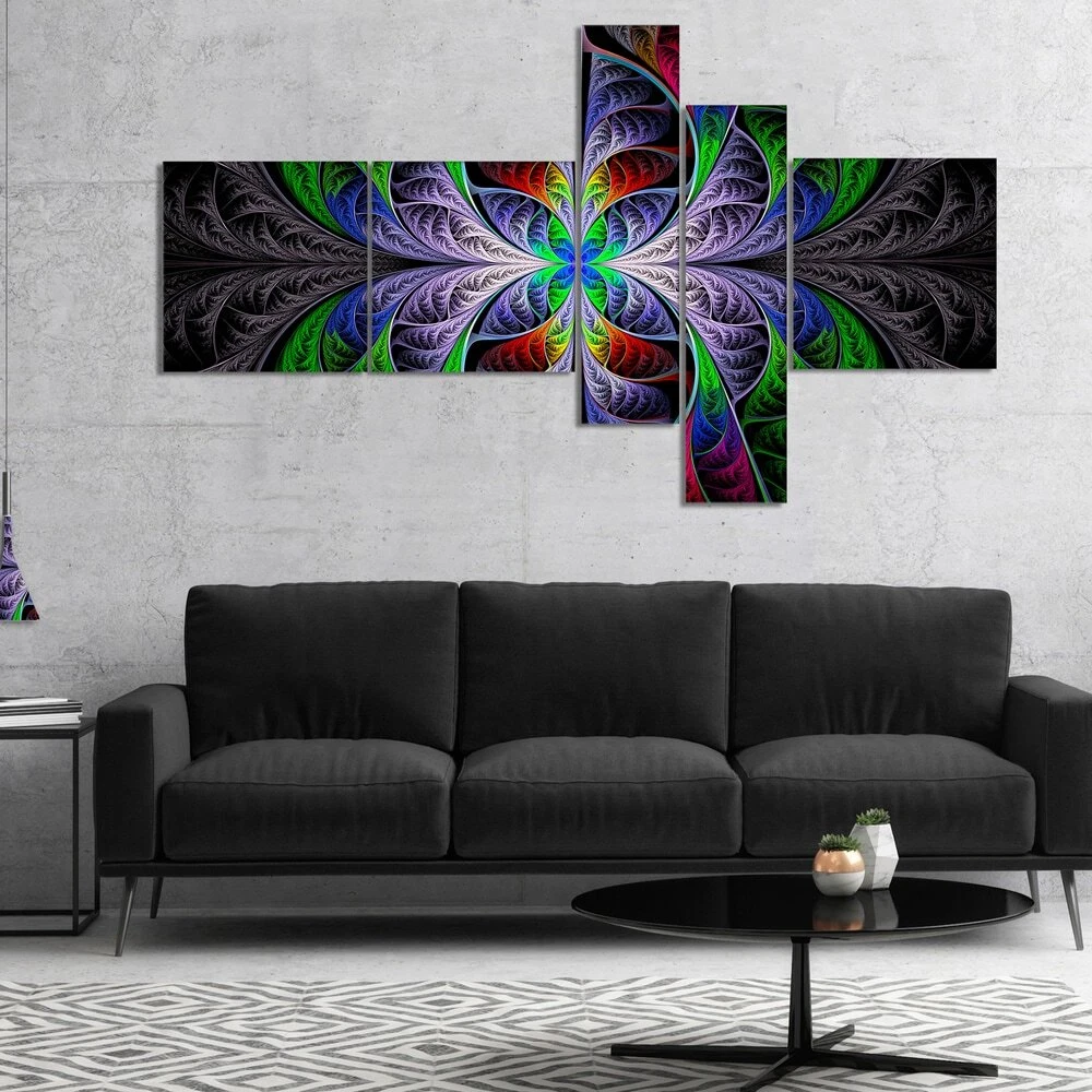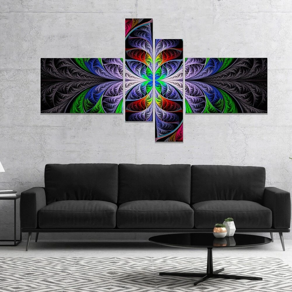 This beautiful Abstract Canvas Art is printed using the highest quality fade resistant ink on canvas. Every one of our fine art giclee canvas prints is printed on premium quality cotton canvas, using the finest quality inks which will not fade over time. Each giclee print is stretched tightly over a 1 inch wood sub frame ensuring the canvas is taught and does not buckle. This canvas art print is gallery-wrapped (the design continues on the sides) , giving it a real art gallery feel. All of our canvas prints are carefully packaged in inflated cushion wrap, fragile labeling and sturdy boxes to ensure a safe delivery. Every canvas print arrives ready to hang on the wall, with the hanging kits included. Shape: RectangleOrientation: HorizontalSubject: AbstractStyle: Contemporary, Fine Art Free Shipping Over $49.99* Details Designart "Beautiful Fractal Stained Glass" Abstract Wall Art Canvas Product Description: This beautiful Abstract Canvas Art is printed using the highest quality fade resistant ink on canvas. Every one of our fine art giclee canvas prints is printed on premium quality cotton canvas, using the finest quality inks which will not fade over time. Each giclee print is stretched tightly over a 1 inch wood sub frame ensuring the canvas is taught and does not buckle. This canvas art print is gallery-wrapped (the design continues on the sides) , giving it a real art gallery feel. All of our canvas prints are carefully packaged in inflated cushion wrap, fragile labeling and sturdy boxes to ensure a safe delivery. Every canvas print arrives ready to hang on the wall, with the hanging kits included. ShapeRectangle OrientationHorizontal SubjectAbstract StyleContemporary, Fine Art Giclee, Modern Size32 inches high x 60 inches wide x 1 inch long