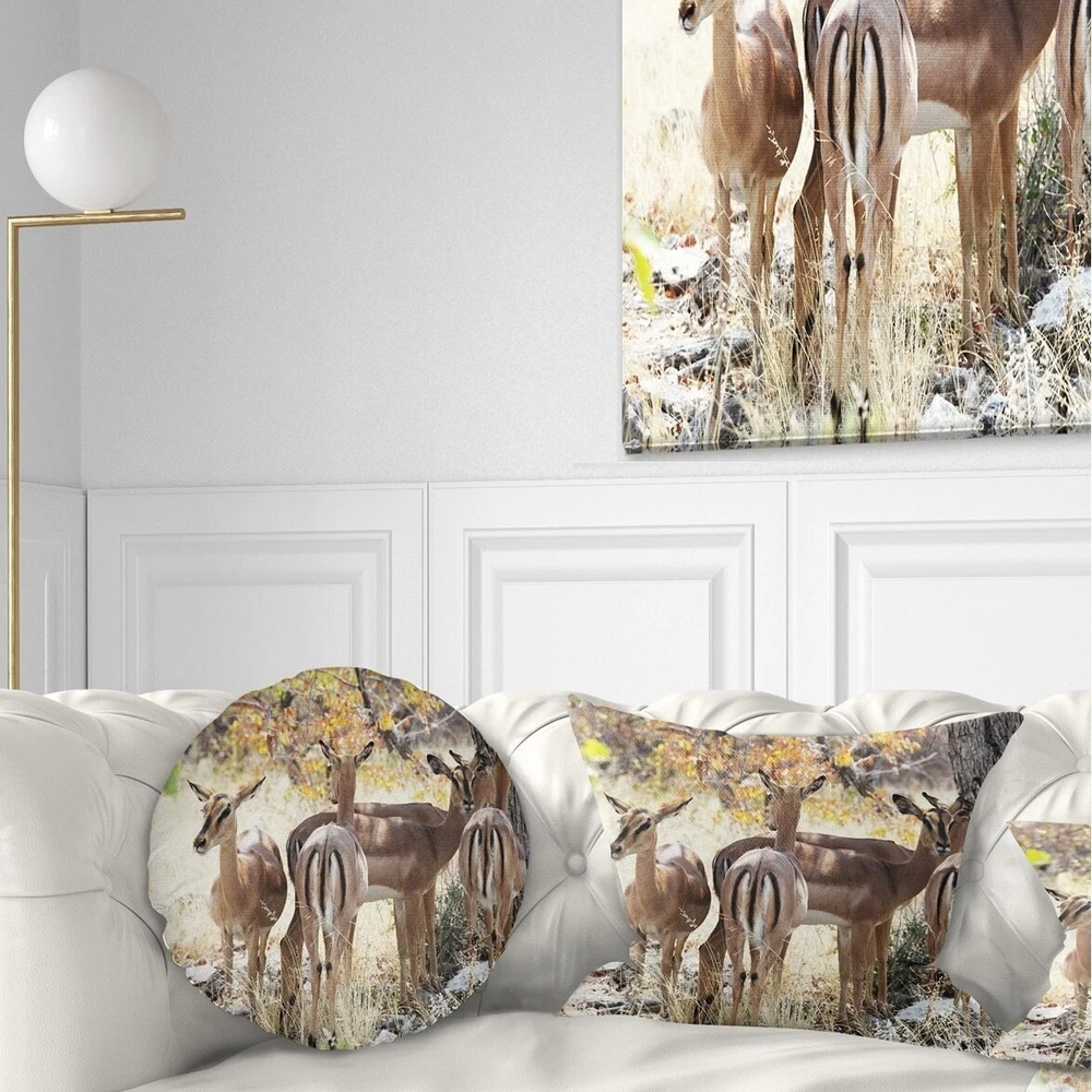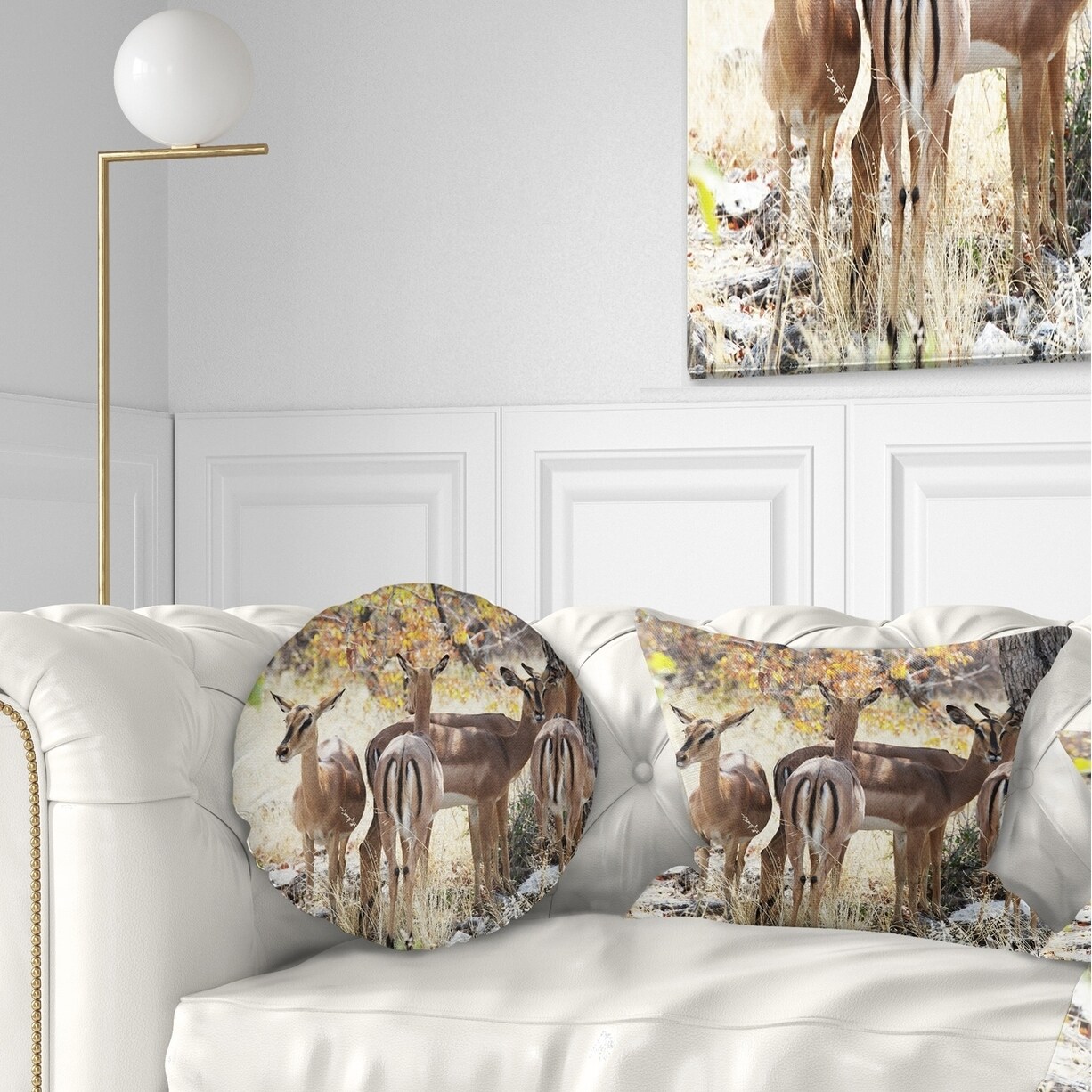Decorative Throw Pillows for Couch Bed Sofa with Zip CoversAn easy, fun way to add a pop of color or bring new life to any room in your home or office is with these beautiful Animal throw pillows. Dress up your bed, sofa or lounger with this decorative design art pillows. Perfect as Traditional bedroom décor, lounge décor Modern living room décor. It adds a fun accent to any room. Throw pillows really do work wonders: they can transform any room from uninviting discomfort to warm and welcoming. And they really do go almost anywhere - arrange a couple on the couch or sofa, place one in your overstuffed chair for extra coziness, toss a couple on the bed and prop yourself up for a great read.These Animals pillow is printed using High Color Density Italian inks to create a vibrantly colored, Free Shipping Over $49.99* Details Designart 'Beautiful Herd of Antelope Gnu' African Throw Pillow Product Description: Decorative Throw Pillows for Couch Bed Sofa with Zip Covers An easy, fun way to add a pop of color or bring new life to any room in your home or office is with these beautiful Animal throw pillows. Dress up your bed, sofa or lounger with this decorative design art pillows. Perfect as Traditional bedroom décor, lounge décor Modern living room décor. It adds a fun accent to any room. Throw pillows really do work wondersthey can transform any room from uninviting discomfort to warm and welcoming. And they really do go almost anywhere - arrange a couple on the couch or sofa, place one in your overstuffed chair for extra coziness, toss a couple on the bed and prop yourself up for a great read. These Animals pillow is printed using High Color Density Italian inks to create a vibrantly colored, sharp artwork. Features: Perfect accent to any furniture piece Basic shapes with a modern graphic design twist Printed on 100% light weight polyester Cushion filled with 100% polyester fill Wrinkle resistant fabric Zip Closure so you can remove the pillow from its' cover Down-like comfort - Odorless 100% Hypoallergenic Machine Wash Cold Separately, Gently Cycle Only, No bleach, hang to dry Print on Demand with High Density Italian Ink Available in Several sizes Attribute :Traditional, Modern, Contemporary Subject Animals, Country Charm, Photography