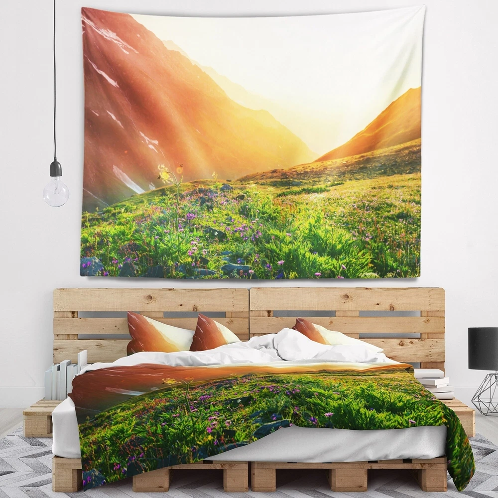 For a quick and easy home or office makeover, our wall tapestries are a great way to add a modern touch of décor and a pop of color to any room in your home or office. This Landscape wall tapestry is created on light weight, wrinkle resistant, polyester fabric making it very easy to install on any wall.These Farmhouse wall tapestry is printed using High Color Density Italian inks to create a vibrantly colored, sharp artwork.This beautiful Beautiful Meadow on Sunny Day wall hanging artwork can also be used as a Bedspread, Bed Cover, Room Décor Tapestry, Beach Throw.This Landscapes tapestry will easily change the plainest wall into an art display. This tapestry serves as a beautiful piece of wall art and through our vast selection of designs and such easy hanging, can be changed frequently Free Shipping Over $49.99* Details Designart 'Beautiful Meadow on Sunny Day' Landscape Wall Tapestry Product Description: For a quick and easy home or office makeover, our wall tapestries are a great way to add a modern touch of décor and a pop of color to any room in your home or office. This Landscape wall tapestry is created on light weight, wrinkle resistant, polyester fabric making it very easy to install on any wall. These Farmhouse wall tapestry is printed using High Color Density Italian inks to create a vibrantly colored, sharp artwork. This beautiful Beautiful Meadow on Sunny Day wall hanging artwork can also be used as a Bedspread, Bed Cover, Room Décor Tapestry, Beach Throw. This Landscapes tapestry will easily change the plainest wall into an art display. This tapestry serves as a beautiful piece of wall art and through our vast selection of designs and such easy hanging, can be changed frequently with the seasons or simply your mood. Features Created on 100% lightweight polyester fabric Anti-wrinkle Easy to hang Vibrant rich colors and sharp details Available in multiple sizes and designs Print on Demand with High Density Italian Ink Available in Several sizes Attribute Farmhouse, Traditional, Fine Art Giglee Subject Landscapes, Country Charrm, photography Care Instructions: - Hand wash or machine wash on gentle cycle.