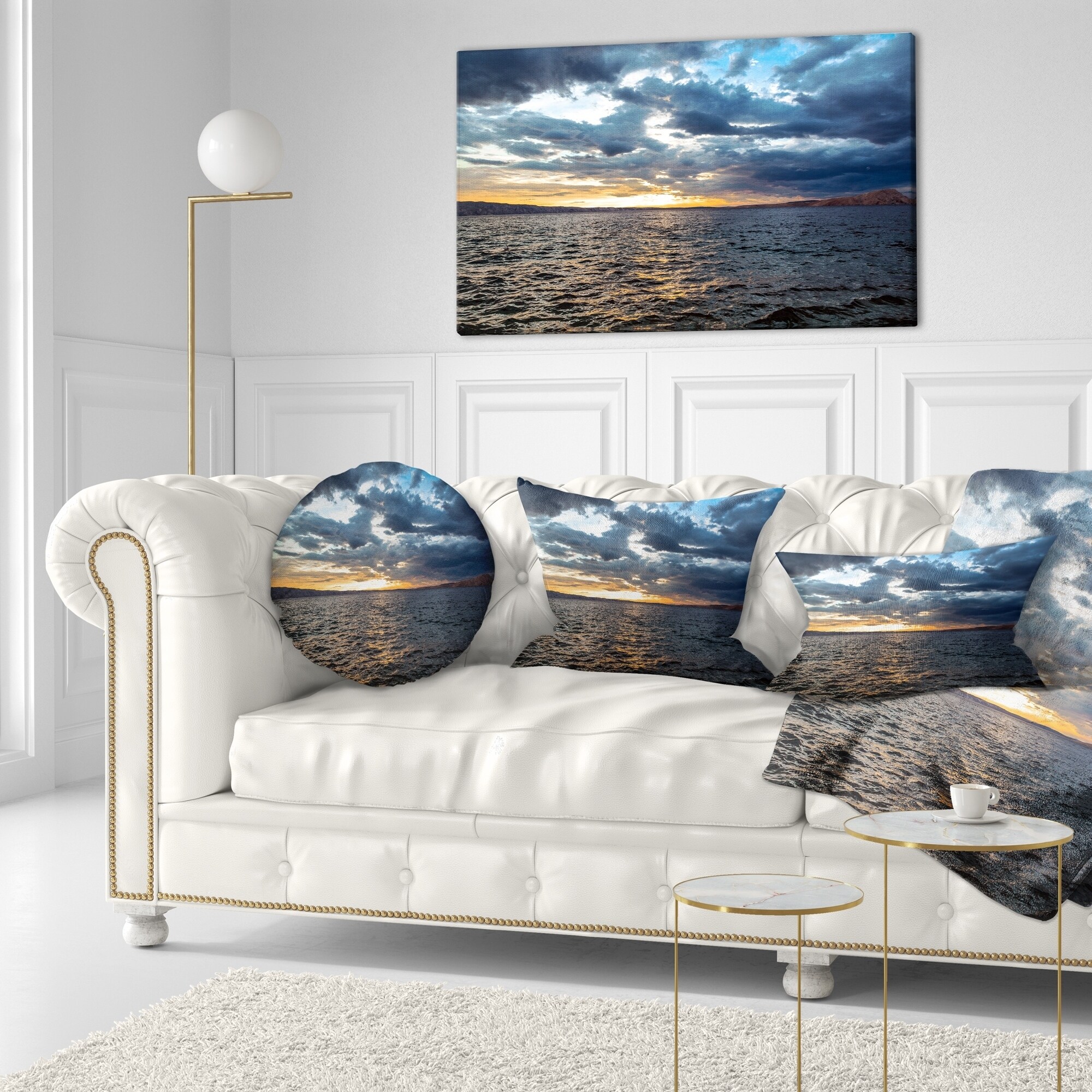 Decorative Throw Pillows for Couch Bed Sofa with Zip CoversAn easy, fun way to add a pop of color or bring new life to any room in your home or office is with these beautiful Sea & Shore throw pillows. Dress up your bed, sofa or lounger with this decorative design art pillows. Perfect as Beach bedroom décor, lounge décor Coastal living room décor. It adds a fun accent to any room. Throw pillows really do work wonders: they can transform any room from uninviting discomfort to warm and welcoming. And they really do go almost anywhere - arrange a couple on the couch or sofa, place one in your overstuffed chair for extra coziness, toss a couple on the bed and prop yourself up for a great read.These Sea & Shore pillow is printed using High Color Density Italian inks to create a vibrantly Free Shipping Over $49.99* Details Designart 'Beautiful Seascape under Cloudy Sky' Modern Seashore Throw Pillow Product Description: Decorative Throw Pillows for Couch Bed Sofa with Zip Covers An easy, fun way to add a pop of color or bring new life to any room in your home or office is with these beautiful Sea & Shore throw pillows. Dress up your bed, sofa or lounger with this decorative design art pillows. Perfect as Beach bedroom décor, lounge décor Coastal living room décor. It adds a fun accent to any room. Throw pillows really do work wondersthey can transform any room from uninviting discomfort to warm and welcoming. And they really do go almost anywhere - arrange a couple on the couch or sofa, place one in your overstuffed chair for extra coziness, toss a couple on the bed and prop yourself up for a great read. These Sea & Shore pillow is printed using High Color Density Italian inks to create a vibrantly colored, sharp artwork. Features: Perfect accent to any furniture piece Basic shapes with a modern graphic design twist Printed on 100% light weight polyester Cushion filled with 100% polyester fill Wrinkle resistant fabric Zip Closure so you can remove the pillow from its' cover Down-like comfort - Odorless 100% Hypoallergenic Machine Wash Cold Separately, Gently Cycle Only, No bleach, hang to dry Print on Demand with High Density Italian Ink Available in Several sizes Attribute :Beach, Coastal, Tropical Subject Sea & Shore, Nautical, Landscapes