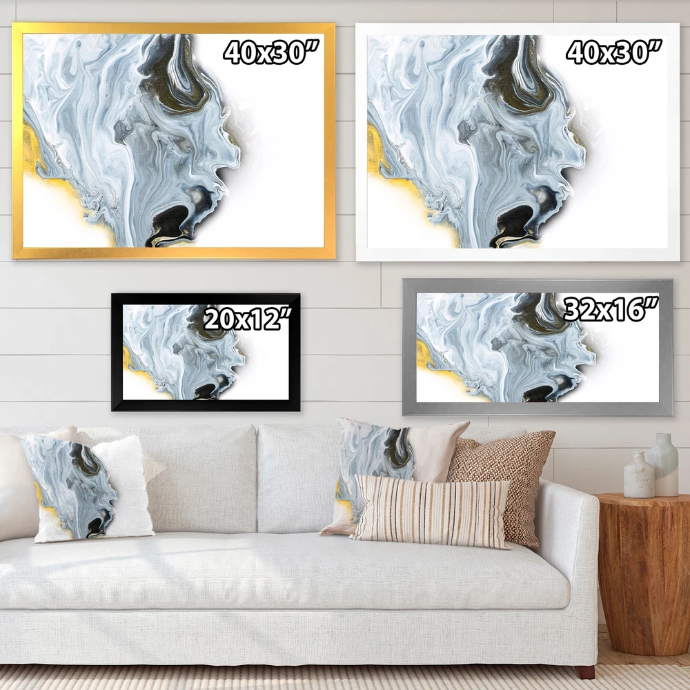 This beautiful Black And White With Gold Marble Abstract Framed wall Art is printed using the highest quality fade resistant ink on canvas. Every one of our Framed Giclee Prints is printed on premium quality canvas, using the finest quality inks which will not fade over time and then mounted and framed on a 1.5 inch wide frame.This framed art print is available in many different color frames. All of our framed art prints are carefully packaged with corner protectors, fragile labeling, and sturdy boxes to ensure a safe delivery. Every framed art arrives ready to hang on the wall, with the hanging kit included.Features:- Style : Modern & Contemporary- Subject : Abstract- Color : White- Premium quality cotton canvas mounted.- Available in several frame colors. - Arrives with instructions and Free Shipping Over $49.99* Details Designart "Black And White With Gold Marble Abstract" Modern Framed Art Print Product Description: This beautiful Black And White With Gold Marble Abstract Framed wall Art is printed using the highest quality fade resistant ink on canvas. Every one of our Framed Giclee Prints is printed on premium quality canvas, using the finest quality inks which will not fade over time and then mounted and framed on a 1.5 inch wide frame. This framed art print is available in many different color frames. All of our framed art prints are carefully packaged with corner protectors, fragile labeling, and sturdy boxes to ensure a safe delivery. Every framed art arrives ready to hang on the wall, with the hanging kit included. Features: - Style Modern & Contemporary - Subject Abstract - Color White - Premium quality cotton canvas mounted. - Available in several frame colors. - Arrives with instructions and hanging kit