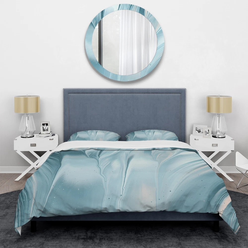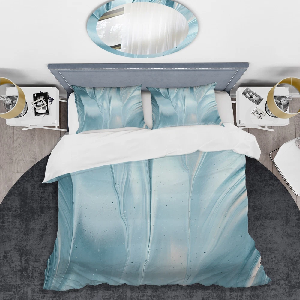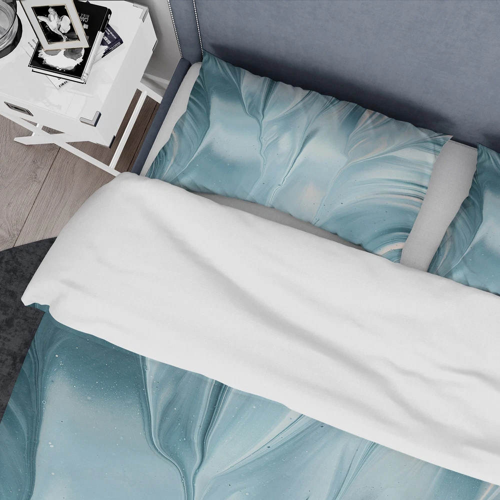 Veer towards the cool end of the color spectrum for a soothing and serene vibe in your bedroom with this Designart 'Blue Modern Water III' bedding set. This set includes a duvet cover and two shams for cohesive style, and is made from microfiber polyester for durability, comfort, and warmth. Free Shipping Over $49.99* Details Designart 'Blue Modern Water III' Geometric Bedding Set - Duvet Cover & Shams Product Description: Veer towards the cool end of the color spectrum for a soothing and serene vibe in your bedroom with this Designart 'Blue Modern Water III' bedding set. This set includes a duvet cover and two shams for cohesive style, and is made from microfiber polyester for durability, comfort, and warmth.
