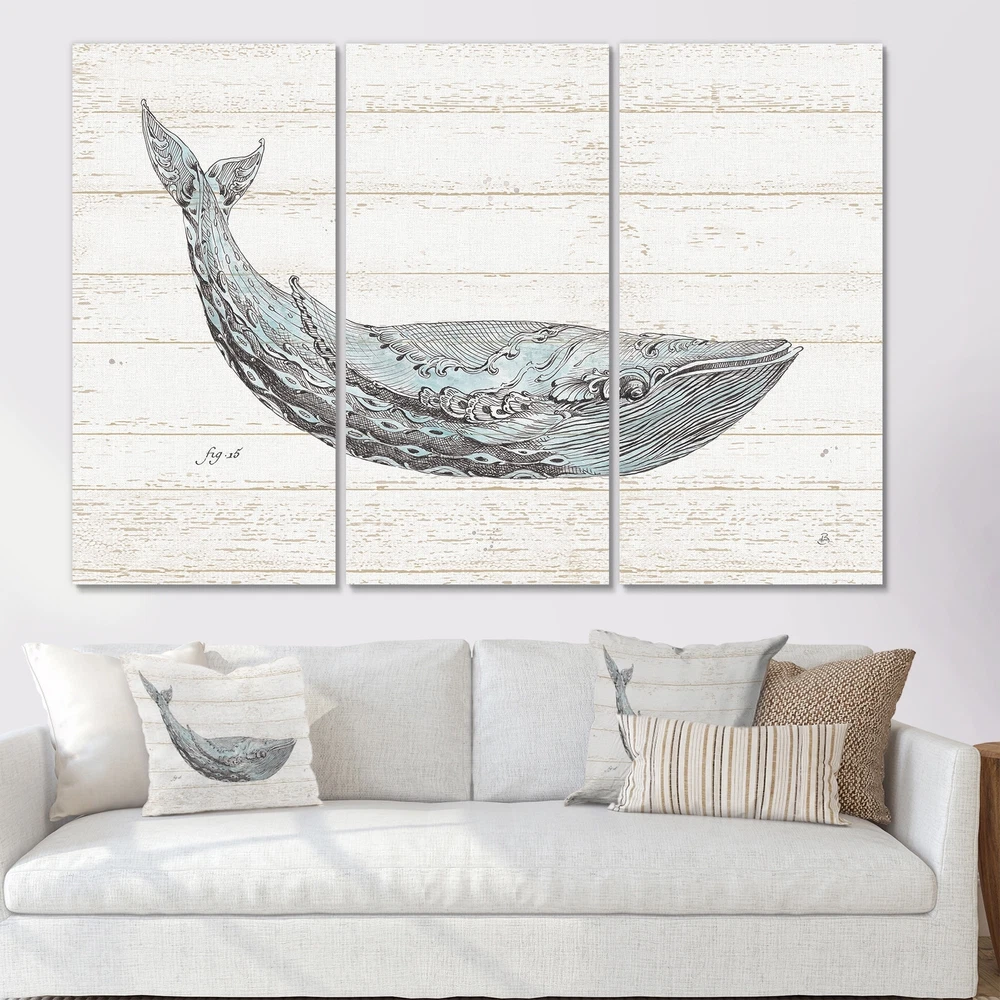 This beautiful Multipanel Blue Whale Watercolor Canvas Art is printed using the highest quality fade resistant ink on canvas. Every one of our fine art giclee canvas prints is printed on premium quality canvas, using the finest quality inks which will not fade over time. Each giclee print is stretched tightly over a 1 inch wood sub frame for small size prints ensuring the canvas is taught and does not buckle.The canvas art print is gallery-wrapped (the design continues on the sides) , giving it a real art gallery feel. All of our canvas prints are carefully packaged with corner protection, fragile labeling and sturdy boxes to ensure a safe delivery. Every canvas print arrives ready to hang on the wall, with the hanging kits included.Features:- Style : Nautical & Coastal- Subject : Free Shipping Over $49.99* Details Designart "Blue Whale Watercolor" Nautical & Coastal Gallery-wrapped Canvas Product Description: This beautiful Multipanel Blue Whale Watercolor Canvas Art is printed using the highest quality fade resistant ink on canvas. Every one of our fine art giclee canvas prints is printed on premium quality canvas, using the finest quality inks which will not fade over time. Each giclee print is stretched tightly over a 1 inch wood sub frame for small size prints ensuring the canvas is taught and does not buckle. The canvas art print is gallery-wrapped (the design continues on the sides) , giving it a real art gallery feel. All of our canvas prints are carefully packaged with corner protection, fragile labeling and sturdy boxes to ensure a safe delivery. Every canvas print arrives ready to hang on the wall, with the hanging kits included. Features: - Style Nautical & Coastal - Subject Animals - Color Blue - Available in sizes 36 in. x 28 in. (3 panels of 12 in. x 28 in.) 48 in. x 32 in. (3 panles of 16 in. x 32 in.) 60 in. x 40 in. (3 panels of 20 in. x 40 in.) - Premium quality cotton canvas. - Arrives ready to hang on the wall - Easy to Hang