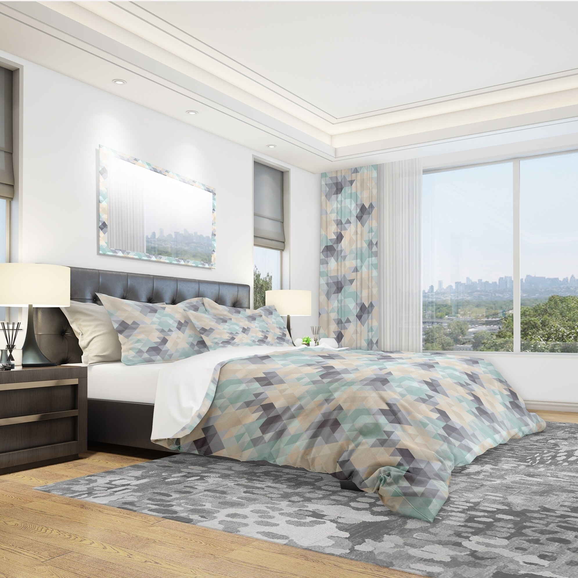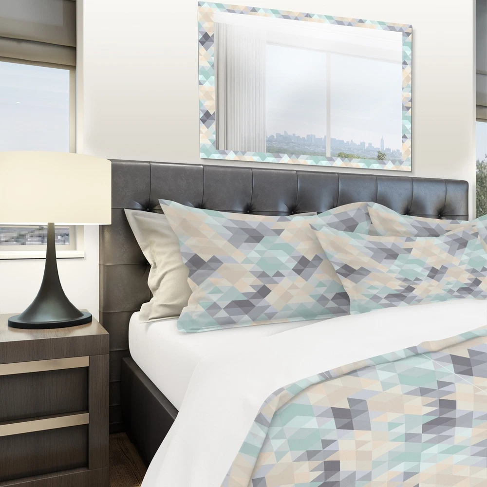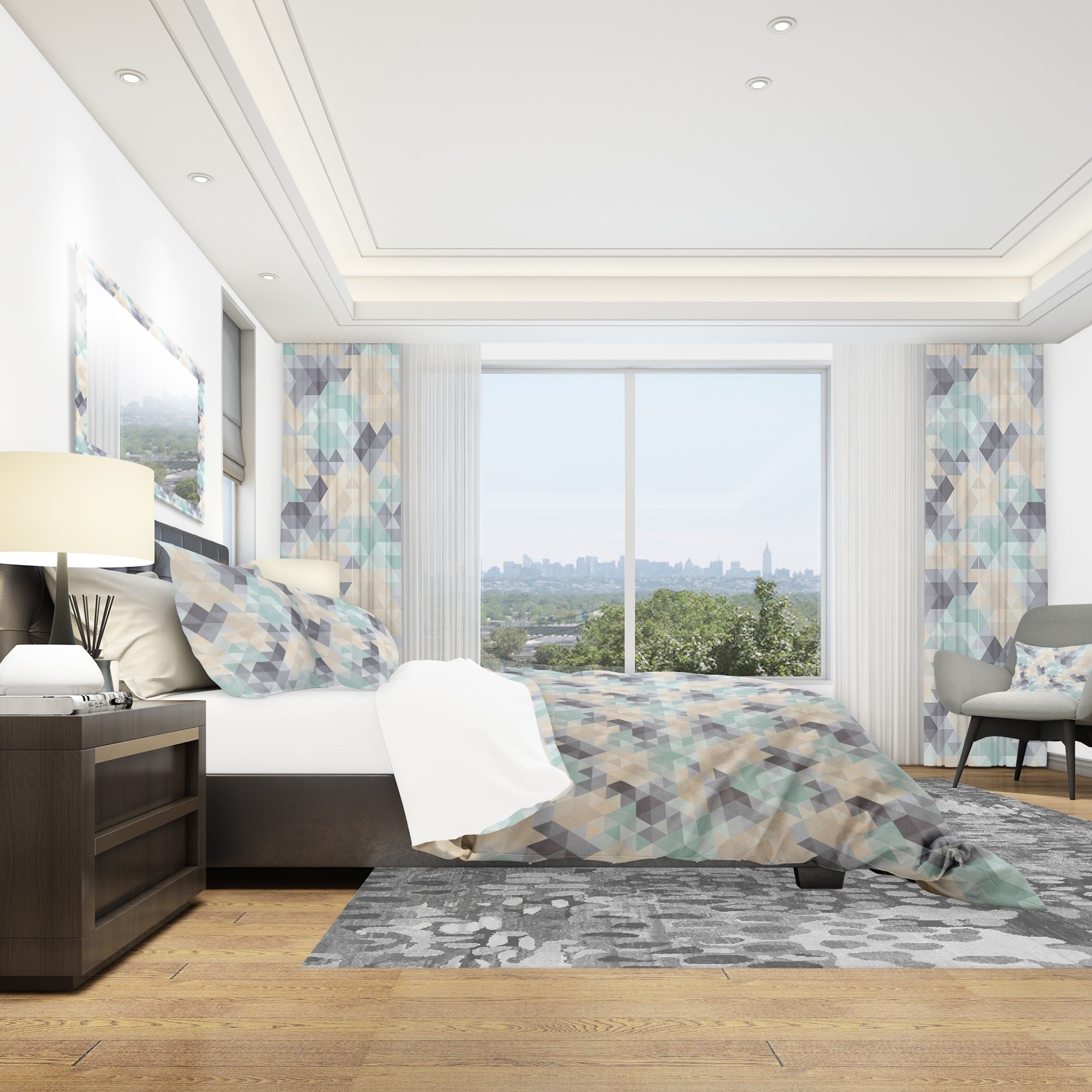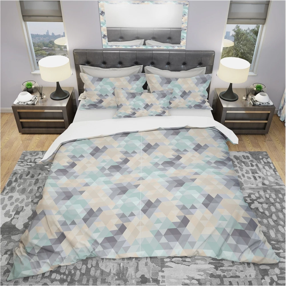 Experience the ultimate combination of style and comfort with this Modern & Contemporary Bedding Set featuring a stunning Blue and Beige Triangular Geometry design. Printed with high density Italian ink, the ultra-soft and lightweight 100% microfiber polyester fabric ensures a good night's sleep. This Geometric Bedding Set includes one Duvet Cover and two Shams, and is available in Twin, Queen, and King sizes. Bring a touch of elegance to your bedroom with this trendy and fun bedding set.Features: High Density Italian Ink for extra vibrant colors Ultra-soft, lightweight 100% microfiber polyester that is wrinkle-resistant, odorless and provides down-like comfort Includes one bed cover and two standard pillow shams to create a complete and stylish look Elegant and soft colors that are Free Shipping Over $49.99* Details Designart 'Blue and Beige Triangular Geometry' Modern & Contemporary Bedding Set Product Description: Experience the ultimate combination of style and comfort with this Modern & Contemporary Bedding Set featuring a stunning Blue and Beige Triangular Geometry design. Printed with high density Italian ink, the ultra-soft and lightweight 100% microfiber polyester fabric ensures a good night's sleep. This Geometric Bedding Set includes one Duvet Cover and two Shams, and is available in Twin, Queen, and King sizes. Bring a touch of elegance to your bedroom with this trendy and fun bedding set. Features: High Density Italian Ink for extra vibrant colors Ultra-soft, lightweight 100% microfiber polyester that is wrinkle-resistant, odorless and provides down-like comfort Includes one bed cover and two standard pillow shams to create a complete and stylish look Elegant and soft colors that are both trendy and fun to brighten and update your bedroom Made in Canada Comforter inserts and pillow inserts are not included Dimensions: King1 Duvet Cover (104" W x 88" L), 2 King Shams (20" W x 36" L) Queen1 Duvet Cover (88" W x 88" L), 2 Standard Shams (16" W x 26" L) Twin1 Duvet Cover (68" W x 88" L), 1 Standard Sham (16" W x 26" L) Product Details: MaterialPolyester PatternGeometric ColorBlue StyleModern Contemporary Geometric, Modern & Contemporary, Modern ReversibleNo Care Instructions: Machine wash on cold gentle cycle. Wash separately on first wash. Use only non-chlorine bleach when needed. Tumble dry low. Remove promptly.