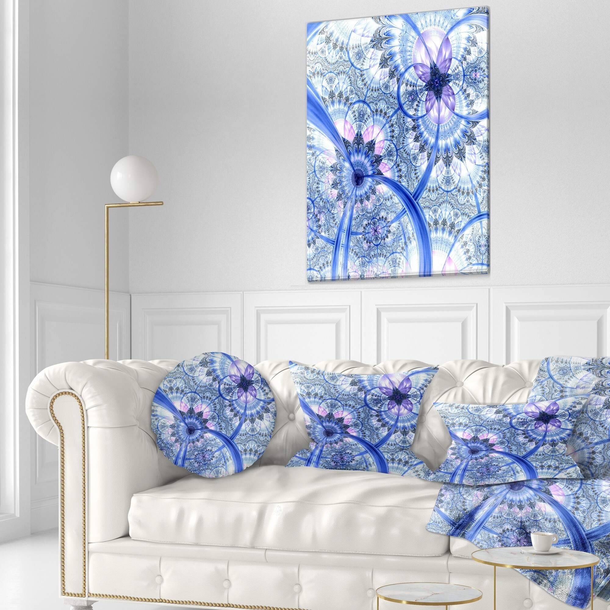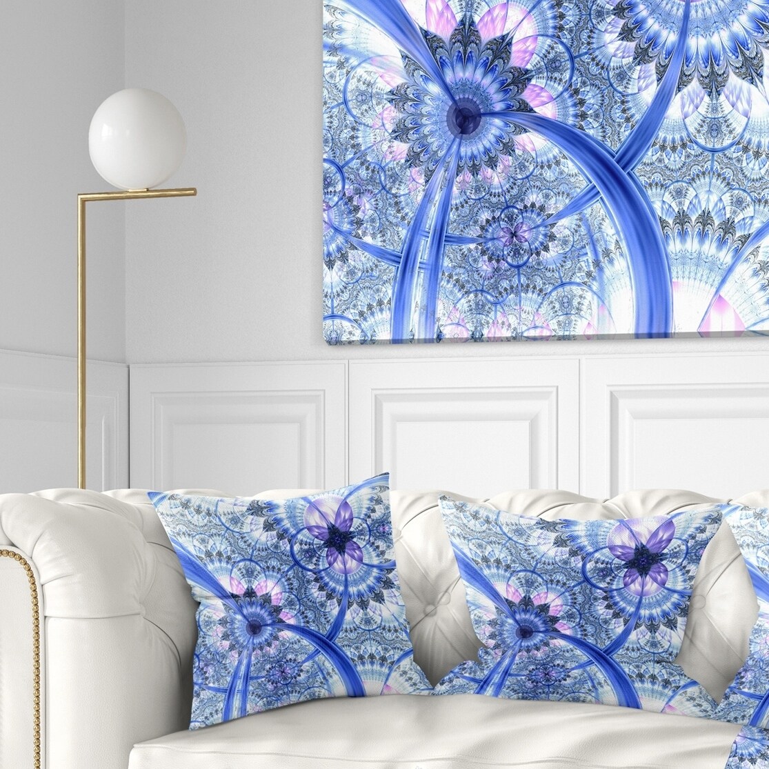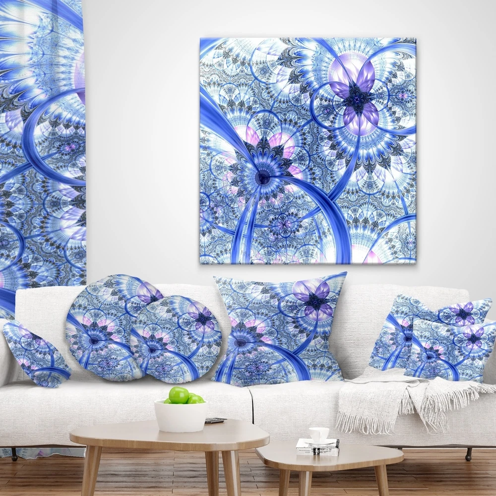 Decorative Throw Pillows for Couch Bed Sofa with Zip CoversAn easy, fun way to add a pop of color or bring new life to any room in your home or office is with these beautiful Floral throw pillows. Dress up your bed, sofa or lounger with this decorative design art pillows. Perfect as Farmhouse bedroom décor, lounge décor Traditional living room décor. It adds a fun accent to any room. Throw pillows really do work wonders: they can transform any room from uninviting discomfort to warm and welcoming. And they really do go almost anywhere - arrange a couple on the couch or sofa, place one in your overstuffed chair for extra coziness, toss a couple on the bed and prop yourself up for a great read.These Floral pillow is printed using High Color Density Italian inks to create a vibrantly colored, Free Shipping Over $49.99* Details Designart 'Bright Blue Fractal Floral Pattern' Floral Throw Pillow Product Description: Decorative Throw Pillows for Couch Bed Sofa with Zip Covers An easy, fun way to add a pop of color or bring new life to any room in your home or office is with these beautiful Floral throw pillows. Dress up your bed, sofa or lounger with this decorative design art pillows. Perfect as Farmhouse bedroom décor, lounge décor Traditional living room décor. It adds a fun accent to any room. Throw pillows really do work wondersthey can transform any room from uninviting discomfort to warm and welcoming. And they really do go almost anywhere - arrange a couple on the couch or sofa, place one in your overstuffed chair for extra coziness, toss a couple on the bed and prop yourself up for a great read. These Floral pillow is printed using High Color Density Italian inks to create a vibrantly colored, sharp artwork. Features: Perfect accent to any furniture piece Basic shapes with a modern graphic design twist Printed on 100% light weight polyester Cushion filled with 100% polyester fill Wrinkle resistant fabric Zip Closure so you can remove the pillow from its' cover Down-like comfort - Odorless 100% Hypoallergenic Machine Wash Cold Separately, Gently Cycle Only, No bleach, hang to dry Print on Demand with High Density Italian Ink Available in Several sizes Attribute :Farmhouse, Traditional, Modern Subject Floral, Landscapes, Country Charm