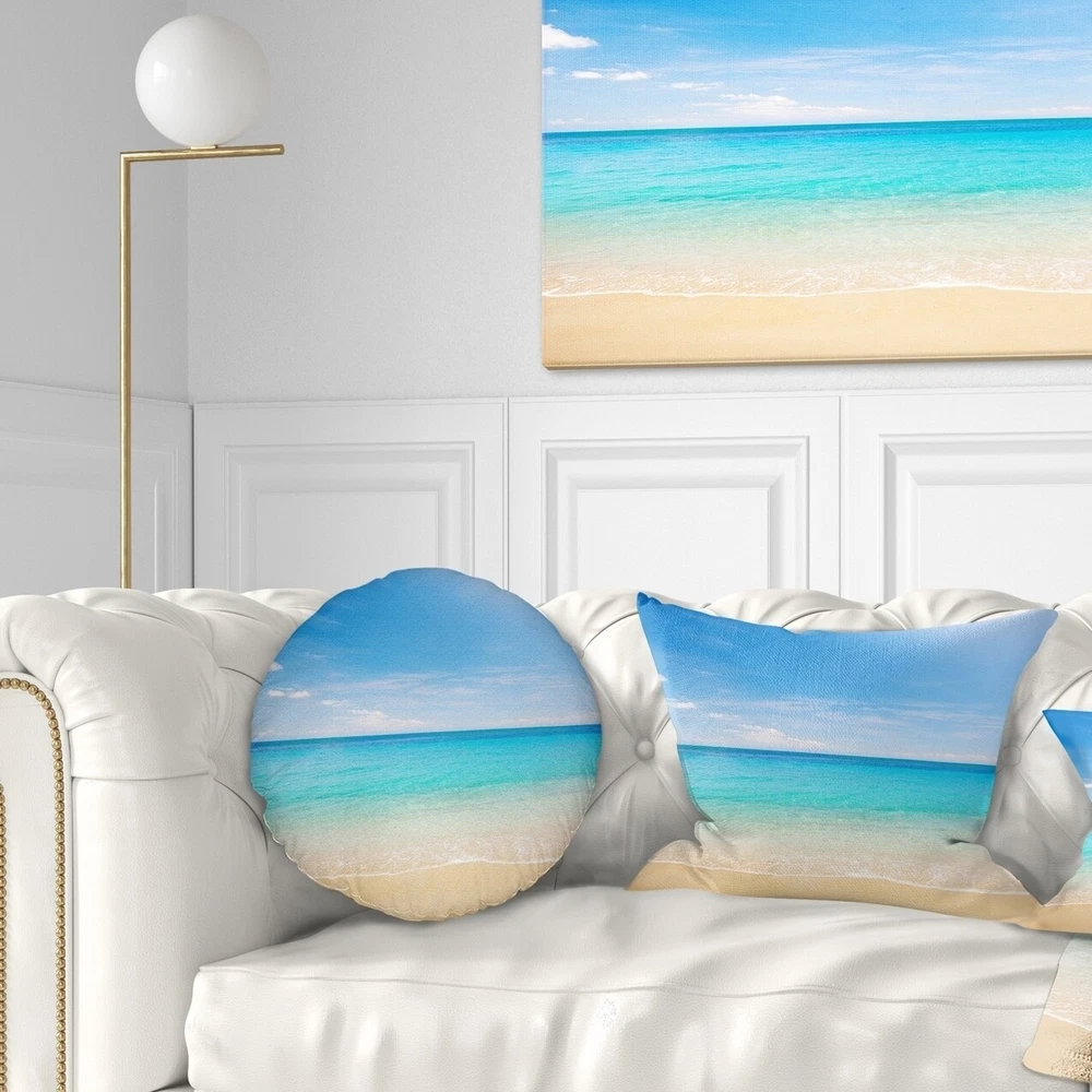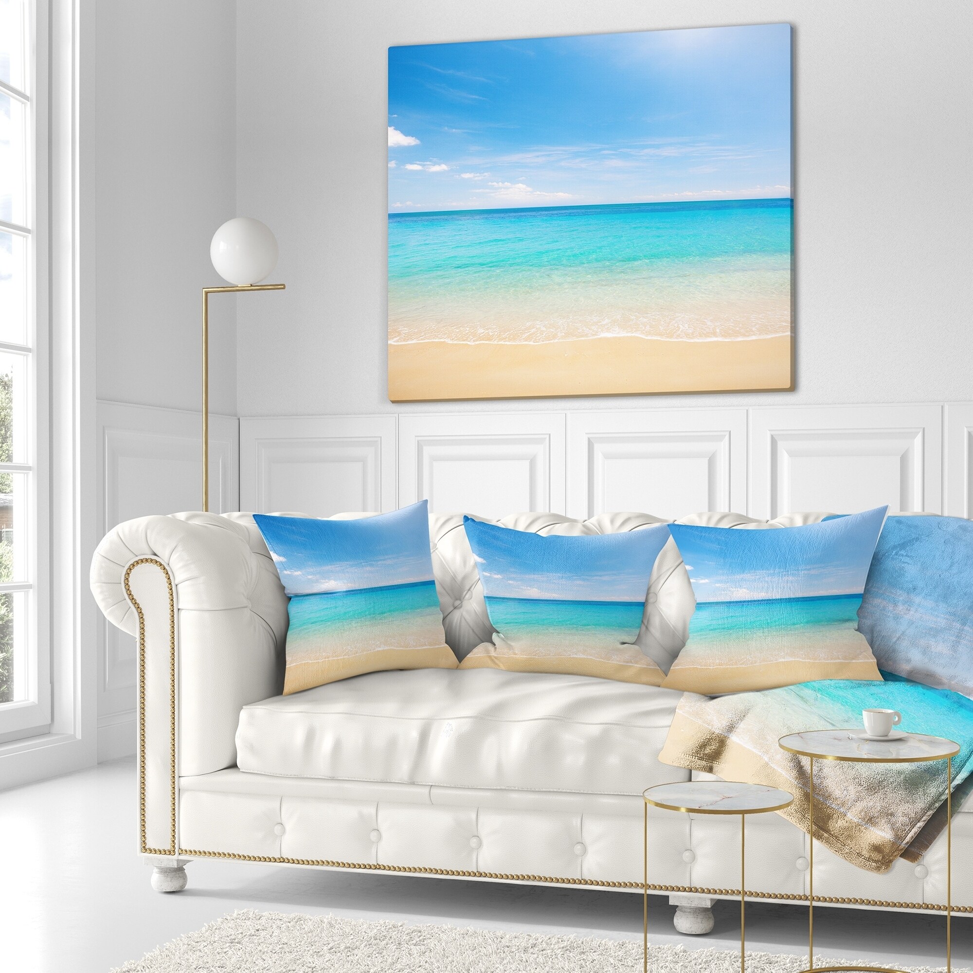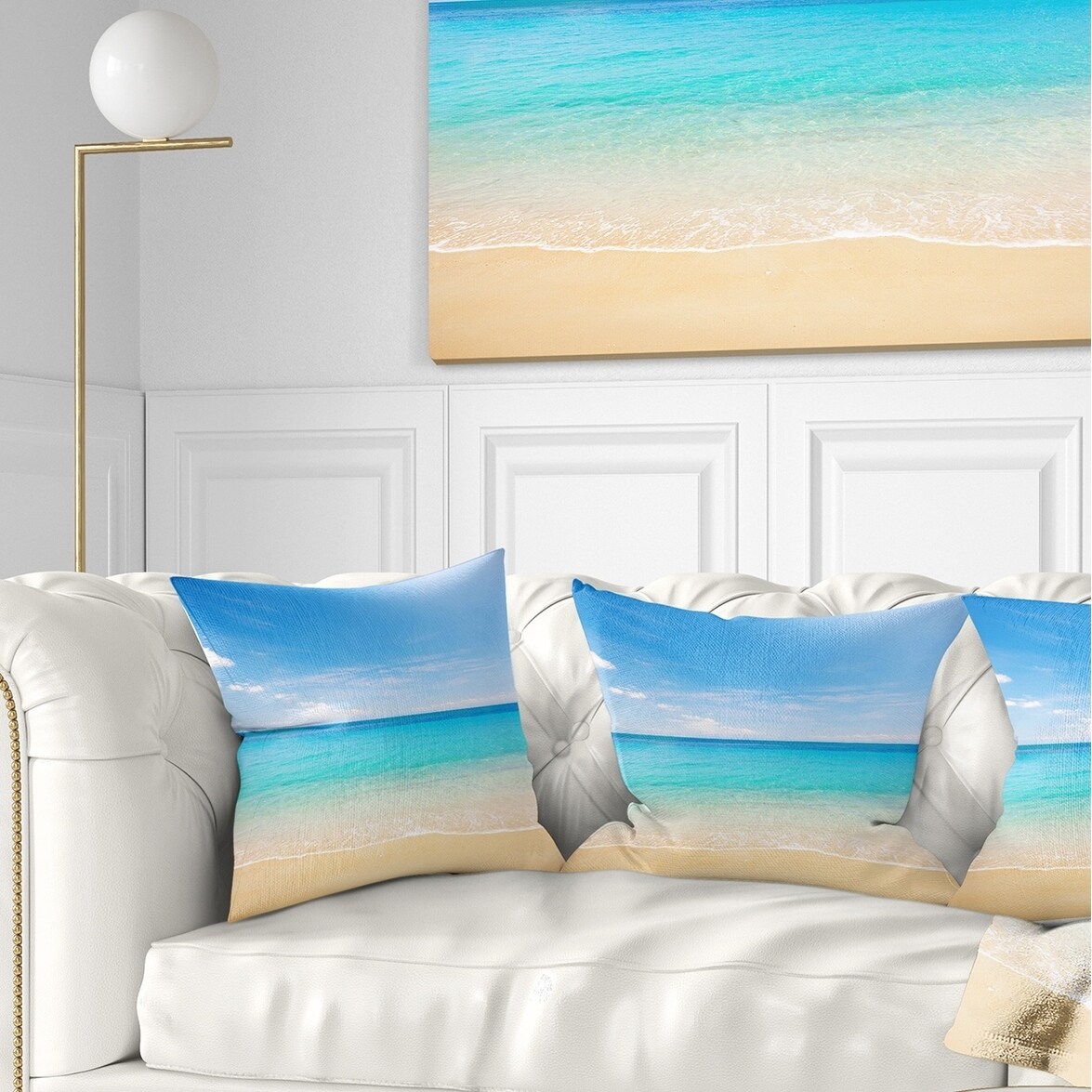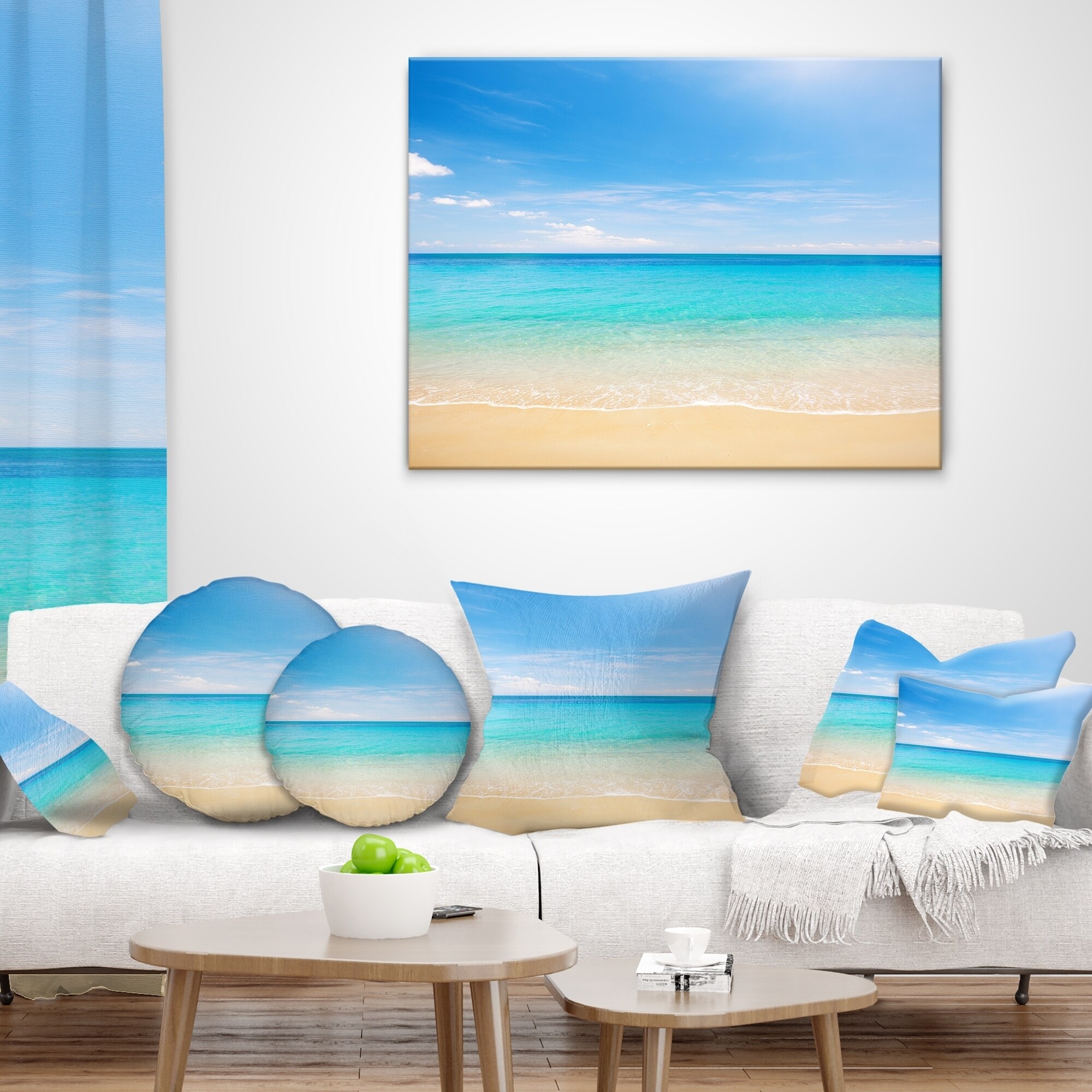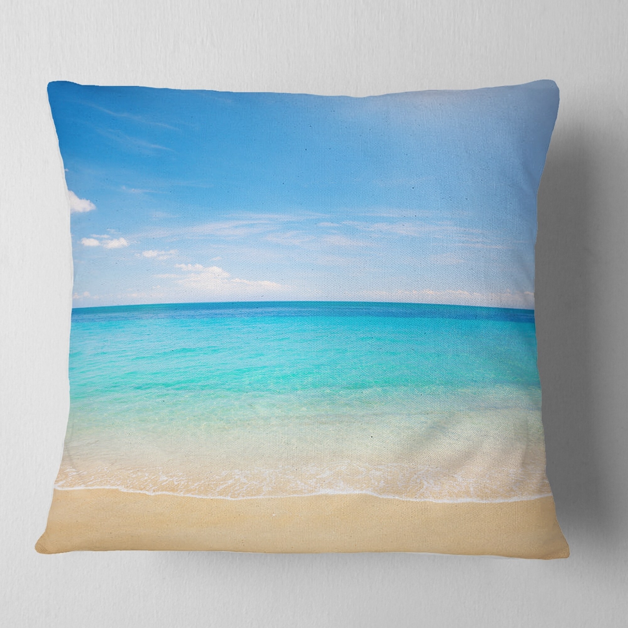 Decorative Throw Pillows for Couch Bed Sofa with Zip CoversAn easy, fun way to add a pop of color or bring new life to any room in your home or office is with these beautiful Sea & Shore throw pillows. Dress up your bed, sofa or lounger with this decorative design art pillows. Perfect as Coastal bedroom décor, lounge décor Beach living room décor. It adds a fun accent to any room. Throw pillows really do work wonders: they can transform any room from uninviting discomfort to warm and welcoming. And they really do go almost anywhere - arrange a couple on the couch or sofa, place one in your overstuffed chair for extra coziness, toss a couple on the bed and prop yourself up for a great read.These Sea & Shore pillow is printed using High Color Density Italian inks to create a vibrantly Free Shipping Over $49.99* Details Designart 'Bright Blue Tropical Beach' Seashore Photo Throw Pillow Product Description: Decorative Throw Pillows for Couch Bed Sofa with Zip Covers An easy, fun way to add a pop of color or bring new life to any room in your home or office is with these beautiful Sea & Shore throw pillows. Dress up your bed, sofa or lounger with this decorative design art pillows. Perfect as Coastal bedroom décor, lounge décor Beach living room décor. It adds a fun accent to any room. Throw pillows really do work wondersthey can transform any room from uninviting discomfort to warm and welcoming. And they really do go almost anywhere - arrange a couple on the couch or sofa, place one in your overstuffed chair for extra coziness, toss a couple on the bed and prop yourself up for a great read. These Sea & Shore pillow is printed using High Color Density Italian inks to create a vibrantly colored, sharp artwork. Features: Perfect accent to any furniture piece Basic shapes with a modern graphic design twist Printed on 100% light weight polyester Cushion filled with 100% polyester fill Wrinkle resistant fabric Zip Closure so you can remove the pillow from its' cover Down-like comfort - Odorless 100% Hypoallergenic Machine Wash Cold Separately, Gently Cycle Only, No bleach, hang to dry Print on Demand with High Density Italian Ink Available in Several sizes Attribute :Coastal, Beach, Tropical Subject Sea & Shore, Nautical, Landscapes