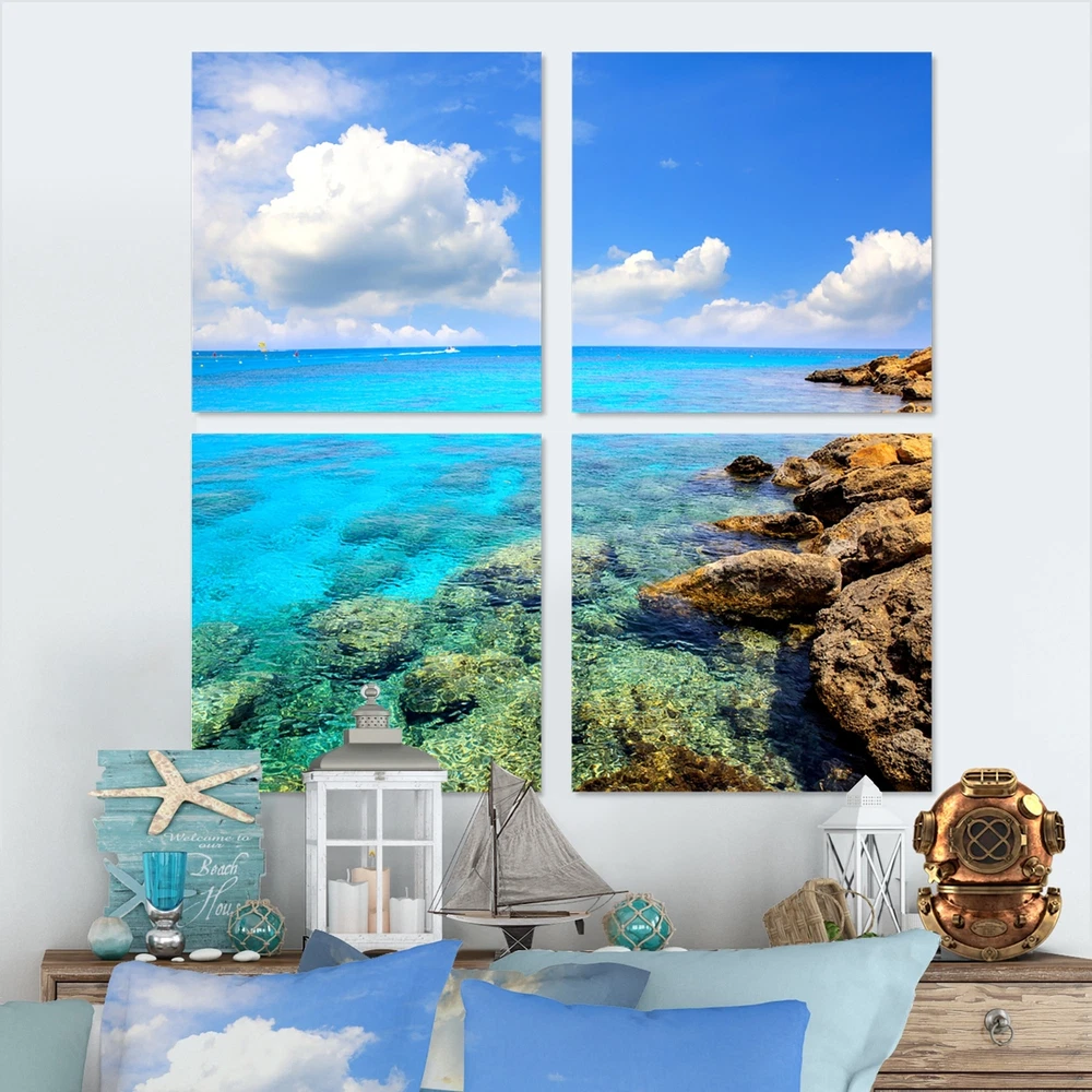 This beautiful Bright Summer Day in Sea Multipanels canvas art is printed using the highest quality fade-resistant ink on canvas. Every one of our fine art giclee canvas prints is printed on premium quality cotton canvas, using the finest quality inks which will not fade over time. Each giclee print is stretched tightly over a 1-inch wood subframe ensuring the canvas is taught and does not buckle. This canvas art print is gallery-wrapped (the design continues on the sides), giving it a real art gallery feel. All of our canvas prints are carefully packaged with plastic protection, fragile labeling, and sturdy boxes to ensure safe delivery. Every canvas print arrives ready to hang on the wall, with the hanging kits included.- Style : Nautical & Coastal- Subject : Beach- Color : Blue- This Free Shipping Over $49.99* Details Designart "Bright Summer Day in Sea" Sea & Shore Canvas Wall Art Print Product Description: This beautiful Bright Summer Day in Sea Multipanels canvas art is printed using the highest quality fade-resistant ink on canvas. Every one of our fine art giclee canvas prints is printed on premium quality cotton canvas, using the finest quality inks which will not fade over time. Each giclee print is stretched tightly over a 1-inch wood subframe ensuring the canvas is taught and does not buckle. This canvas art print is gallery-wrapped (the design continues on the sides), giving it a real art gallery feel. All of our canvas prints are carefully packaged with plastic protection, fragile labeling, and sturdy boxes to ensure safe delivery. Every canvas print arrives ready to hang on the wall, with the hanging kits included. - Style Nautical & Coastal - Subject Beach - Color Blue - This canvas giclee print is gallery-wrapped (the design continues on the sides) , giving it a real art gallery feel. - Premium quality cotton canvas. - Arrives ready to hang on the wall - Easy to Hang