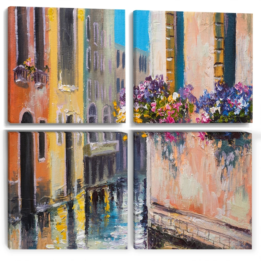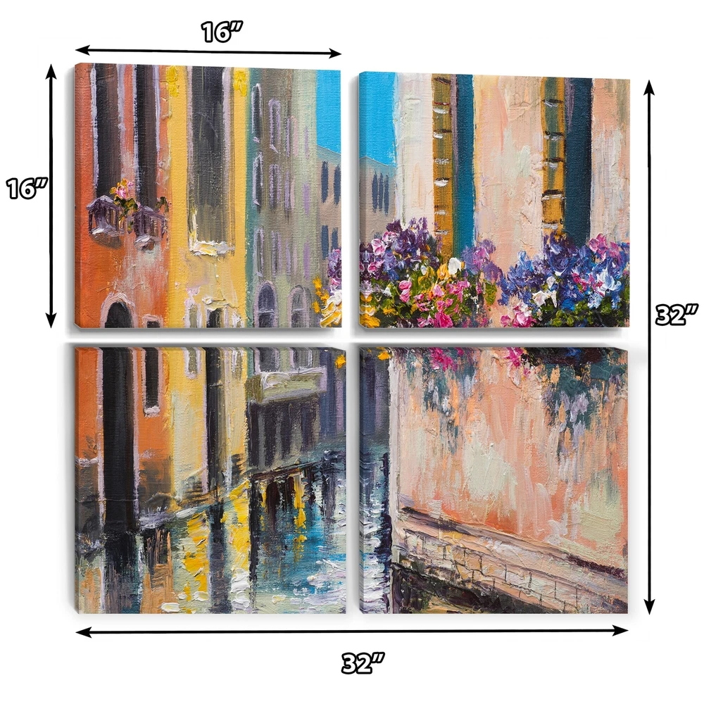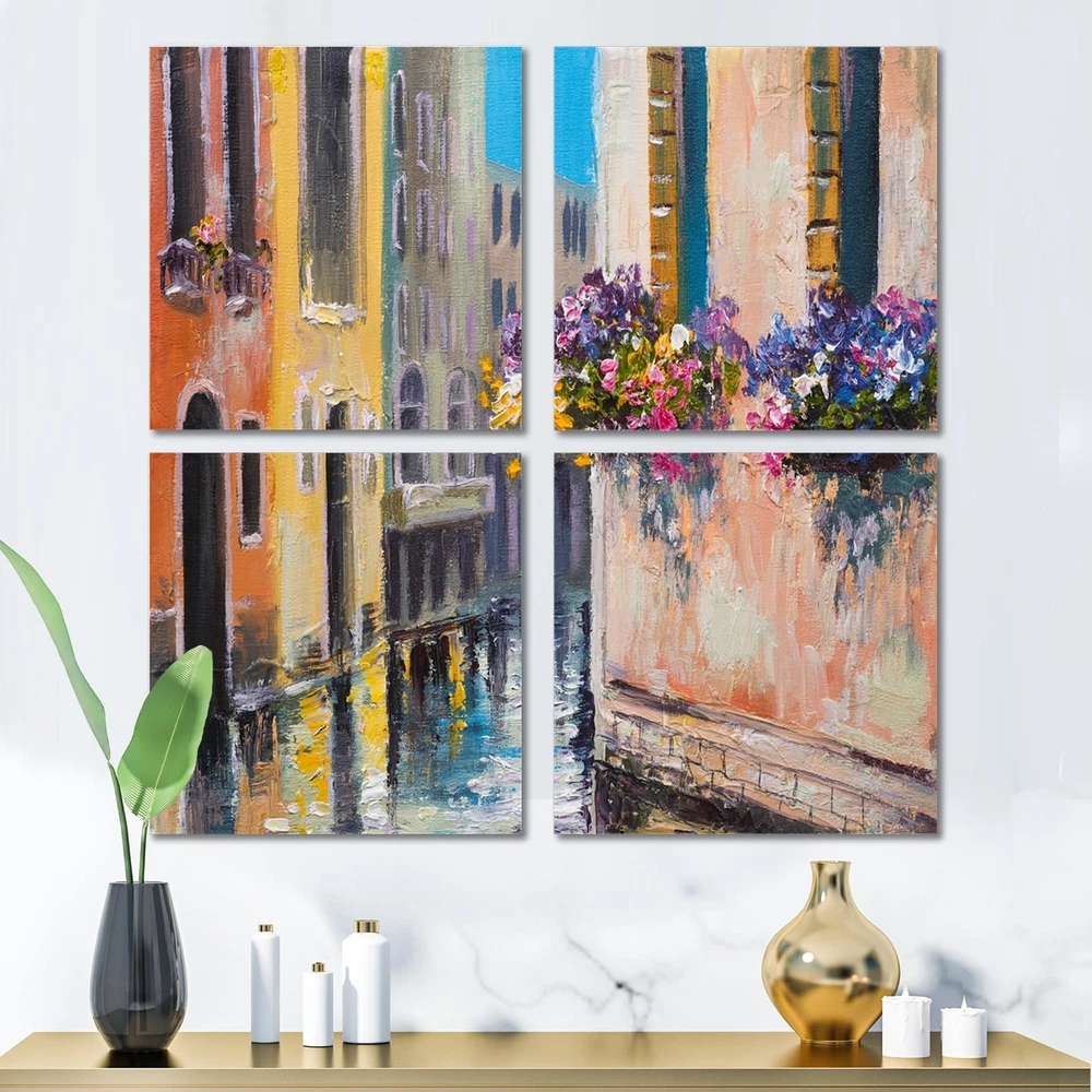 This beautiful Canal in Venice with Flowers Multipanels canvas art is printed using the highest quality fade-resistant ink on canvas. Every one of our fine art giclee canvas prints is printed on premium quality cotton canvas, using the finest quality inks which will not fade over time. Each giclee print is stretched tightly over a 1-inch wood subframe ensuring the canvas is taught and does not buckle. This canvas art print is gallery-wrapped (the design continues on the sides), giving it a real art gallery feel. All of our canvas prints are carefully packaged with plastic protection, fragile labeling, and sturdy boxes to ensure safe delivery. Every canvas print arrives ready to hang on the wall, with the hanging kits included.- Style : Industrial- Subject : Architecture- Color : Brown- Free Shipping Over $49.99* Details Designart "Canal in Venice with Flowers" Cityscape Canvas Wall Art Print Product Description: This beautiful Canal in Venice with Flowers Multipanels canvas art is printed using the highest quality fade-resistant ink on canvas. Every one of our fine art giclee canvas prints is printed on premium quality cotton canvas, using the finest quality inks which will not fade over time. Each giclee print is stretched tightly over a 1-inch wood subframe ensuring the canvas is taught and does not buckle. This canvas art print is gallery-wrapped (the design continues on the sides), giving it a real art gallery feel. All of our canvas prints are carefully packaged with plastic protection, fragile labeling, and sturdy boxes to ensure safe delivery. Every canvas print arrives ready to hang on the wall, with the hanging kits included. - Style Industrial - Subject Architecture - Color Brown - This canvas giclee print is gallery-wrapped (the design continues on the sides) , giving it a real art gallery feel. - Premium quality cotton canvas. - Arrives ready to hang on the wall - Easy to Hang
