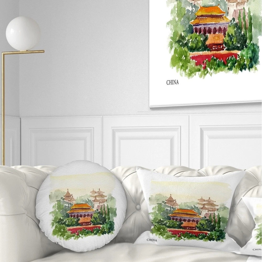 Decorative Throw Pillows for Couch Bed Sofa with Zip CoversAn easy, fun way to add a pop of color or bring new life to any room in your home or office is with these beautiful Landscape throw pillows. Dress up your bed, sofa or lounger with this decorative design art pillows. Perfect as Farmhouse bedroom décor, lounge décor Traditional living room décor. It adds a fun accent to any room. Throw pillows really do work wonders: they can transform any room from uninviting discomfort to warm and welcoming. And they really do go almost anywhere - arrange a couple on the couch or sofa, place one in your overstuffed chair for extra coziness, toss a couple on the bed and prop yourself up for a great read.These Landscapes pillow is printed using High Color Density Italian inks to create a vibrantly Free Shipping Over $49.99* Details Designart 'China Vector Illustration' Cityscape Throw Pillow Product Description: Decorative Throw Pillows for Couch Bed Sofa with Zip Covers An easy, fun way to add a pop of color or bring new life to any room in your home or office is with these beautiful Landscape throw pillows. Dress up your bed, sofa or lounger with this decorative design art pillows. Perfect as Farmhouse bedroom décor, lounge décor Traditional living room décor. It adds a fun accent to any room. Throw pillows really do work wondersthey can transform any room from uninviting discomfort to warm and welcoming. And they really do go almost anywhere - arrange a couple on the couch or sofa, place one in your overstuffed chair for extra coziness, toss a couple on the bed and prop yourself up for a great read. These Landscapes pillow is printed using High Color Density Italian inks to create a vibrantly colored, sharp artwork. Features: Perfect accent to any furniture piece Basic shapes with a modern graphic design twist Printed on 100% light weight polyester Cushion filled with 100% polyester fill Wrinkle resistant fabric Zip Closure so you can remove the pillow from its' cover Down-like comfort - Odorless 100% Hypoallergenic Machine Wash Cold Separately, Gently Cycle Only, No bleach, hang to dry Print on Demand with High Density Italian Ink Available in Several sizes Attribute :Farmhouse, Traditional, Fine Art Giclee Subject Landscapes, Country Charrm,