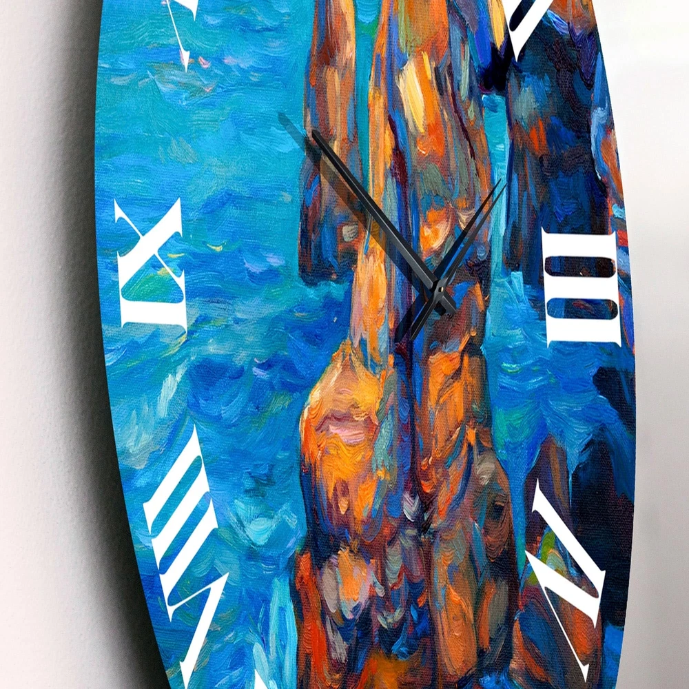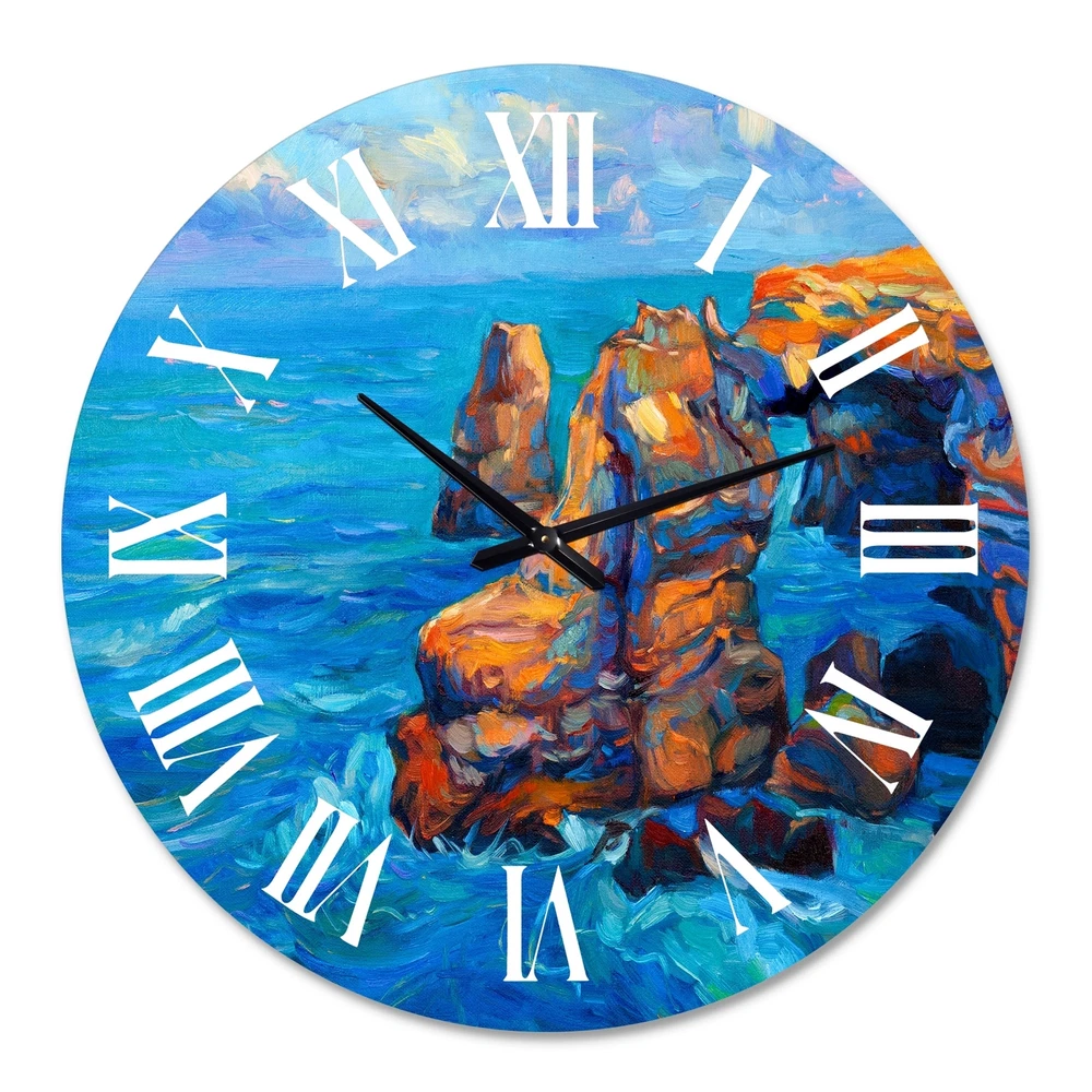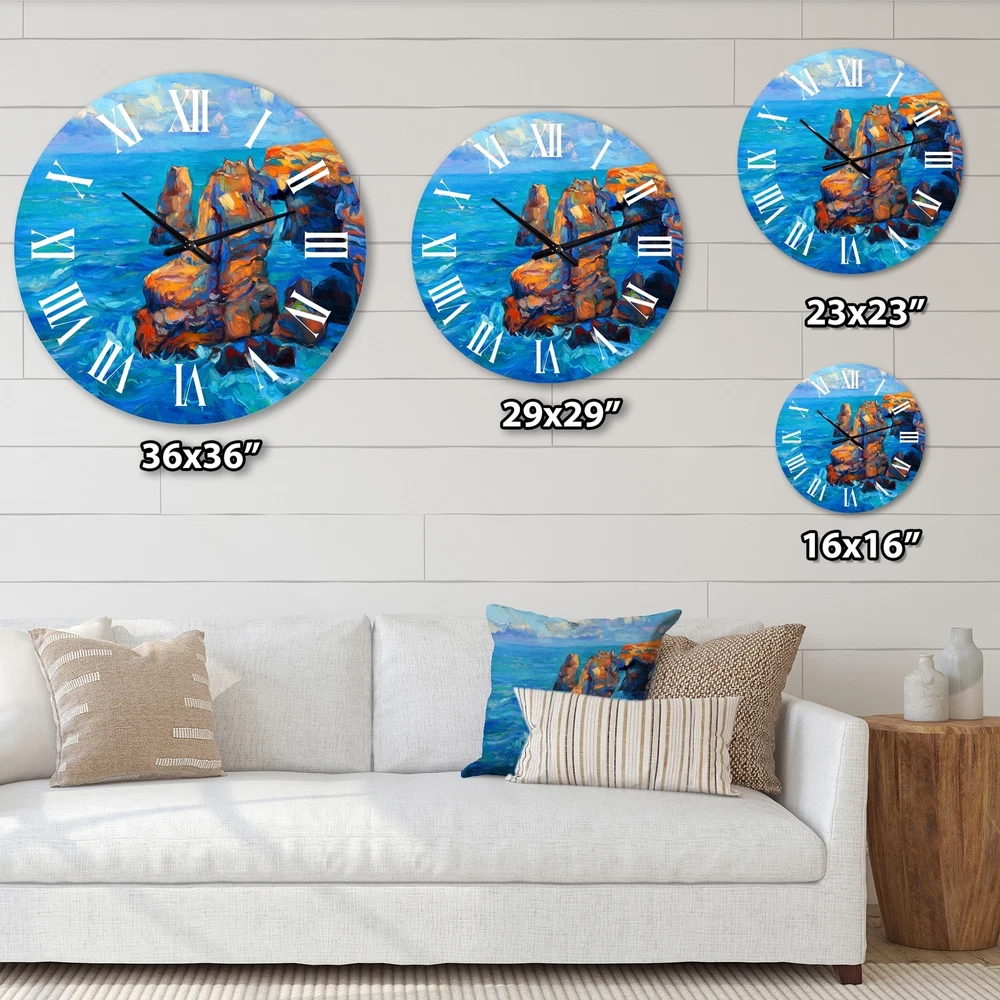 A beautiful addition to any home or office, this Nautical & Coastal round wall clock is made on 100% solid aluminum. It has a highly reflective glossy finish creating a sleek modern look. This Cliffs By The Blue Ocean wall clock arrives completely ready to hang on the wall. Simply insert the "AA" battery is included with your order.Available in several size, this Modern Oversized Clock makes it the focal point of any room.Features - Ultra Gloss Coating ensures colors are extra vibrant with light reflection. - 1mm Aluminum grade sheet metal. - 1-inch mounting frame gives the illusion of artwork floating on the wall. - Mounting brackets and instructions are included. - High quality digital images are created directly into a glossy aluminum panel, producing a stunning and captivating print in Free Shipping Over $49.99* Details Designart 'Cliffs By The Blue Ocean' Nautical & Coastal wall clock Product Description: A beautiful addition to any home or office, this Nautical & Coastal round wall clock is made on 100% solid aluminum. It has a highly reflective glossy finish creating a sleek modern look. This Cliffs By The Blue Ocean wall clock arrives completely ready to hang on the wall. Simply insert the "AA" battery is included with your order. Available in several size, this Modern Oversized Clock makes it the focal point of any room. Features - Ultra Gloss Coating ensures colors are extra vibrant with light reflection. - 1mm Aluminum grade sheet metal. - 1-inch mounting frame gives the illusion of artwork floating on the wall. - Mounting brackets and instructions are included. - High quality digital images are created directly into a glossy aluminum panel, producing a stunning and captivating print in the glossy finish of the metal. - Easy to clean with a microfiber cloth. - "AA" battery is included with your order. - Easy to hang. See Options drop-down for available sizes.