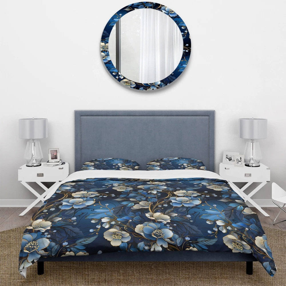 There is just nothing better than a beautiful, inviting comfortable bed after a long day. This Floral bed set is created using the richest colors stemming from high density Italian ink and the softest fabrics making it the perfect way to spruce up your bedroom, while keeping it ultra-comfortable. This luxurious Cobalt Blue Nouveau Vines Victorian Pattern II bed design is made with 100% microfiber polyester, making it ultra-soft to ensure you sleep comfortably all night long. This Cottage set includes 1 Bed Cover and 2 Shams and is available in twin, queen and king sizes.This Bedding Set is easily integrated into your already decorated space.What's Included? - Duvet Cover - Shams - Pillow Cases not included but can be buy separately - Comforter Insert NOT INCLUDEDFeatures Free Shipping Over $49.99* Details Designart "Cobalt Blue Nouveau Vines Victorian Pattern II" Cottage Bedding Cover Product Description: There is just nothing better than a beautiful, inviting comfortable bed after a long day. This Floral bed set is created using the richest colors stemming from high density Italian ink and the softest fabrics making it the perfect way to spruce up your bedroom, while keeping it ultra-comfortable. This luxurious Cobalt Blue Nouveau Vines Victorian Pattern II bed design is made with 100% microfiber polyester, making it ultra-soft to ensure you sleep comfortably all night long. This Cottage set includes 1 Bed Cover and 2 Shams and is available in twin, queen and king sizes. This Bedding Set is easily integrated into your already decorated space. What's Included? - Duvet Cover - Shams - Pillow Cases not included but can be buy separately - Comforter Insert NOT INCLUDED Features - Printed using High Density Italian Ink making the colors extra vibrant. - Made from ultra-soft, lightweight 100% microfiber polyester. Wrinkle resistant fabric. Down-like comfort, odorless. - The Cottage bed set includes one bed cover and two standard pillow shams to create a complete and stylish look. - The elegant and soft colors are both trendy and fun to brighten and update your bedroom. - Made in Canada - Decorative Wall Art and throw pillows to match this set are available but sold separately. - Actual comforter inserts and pillow inserts are not included. This set includes the two pillow shams and comforter cover only. King Dimensions: - 1 Duvet Cover104 inches wide x 88 inches long - 2 King Shams20 inches wide x 36 inches long Queen Dimensions: - 1 Duvet Cover88 inches wide x 88 inches long - 2 Standard Shams16 inches wide x 26 inches long Twin Dimensions: - 1 Duvet Cover68 inches wide x 88 inches long - 1 Standard Sham16 inches wide x 26 inches long Product Details - MaterialPolyester. - PatternFloral - ColorBlue - StyleCottage; traditional - ReversibleNo Directions: Fabric Care InstructionsMachine wash on cold gentle cycle. Wash separately on first wash. Use only non- chlorine bleach when needed. Tumble dry low. Remove promptly.
